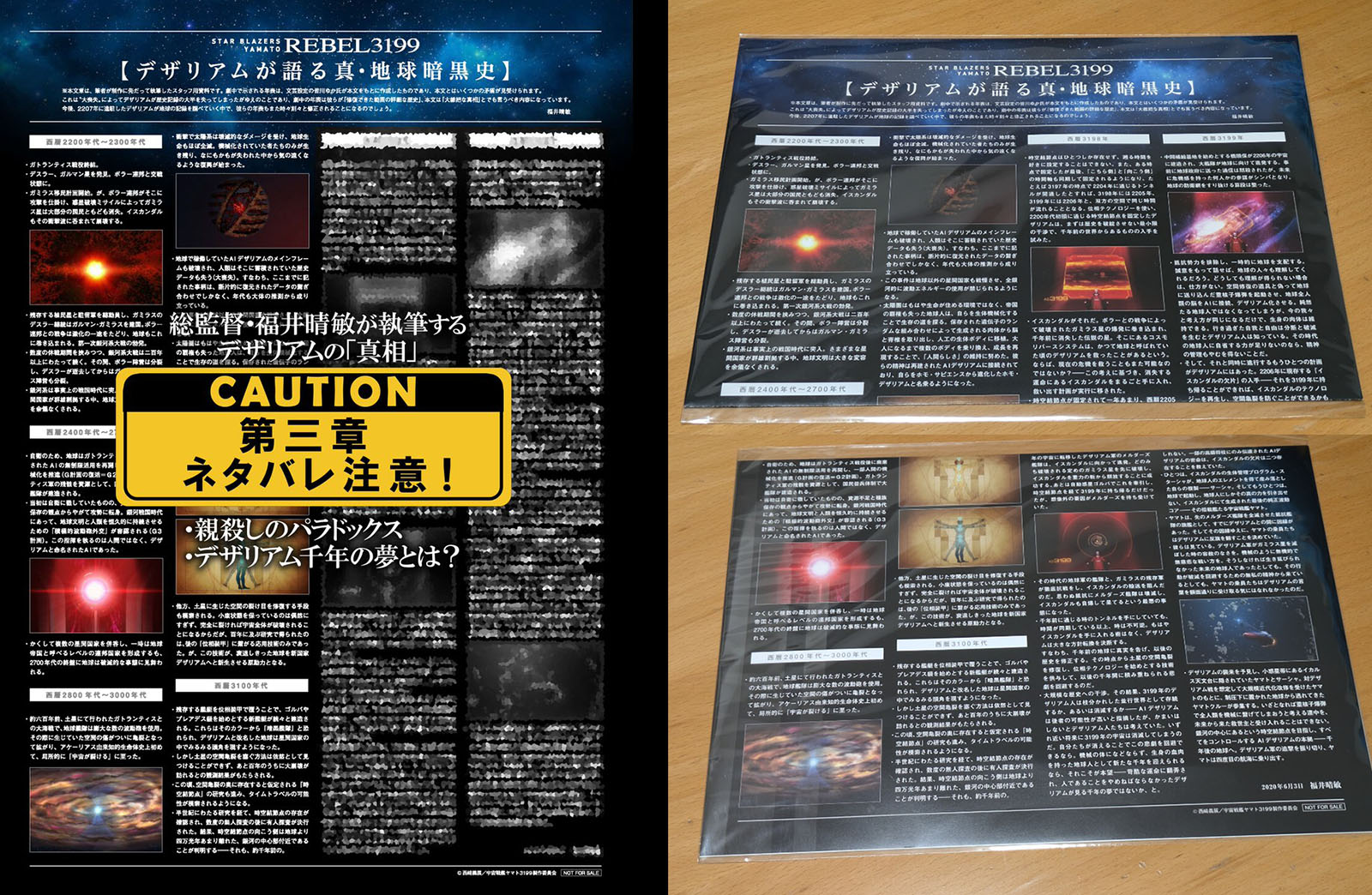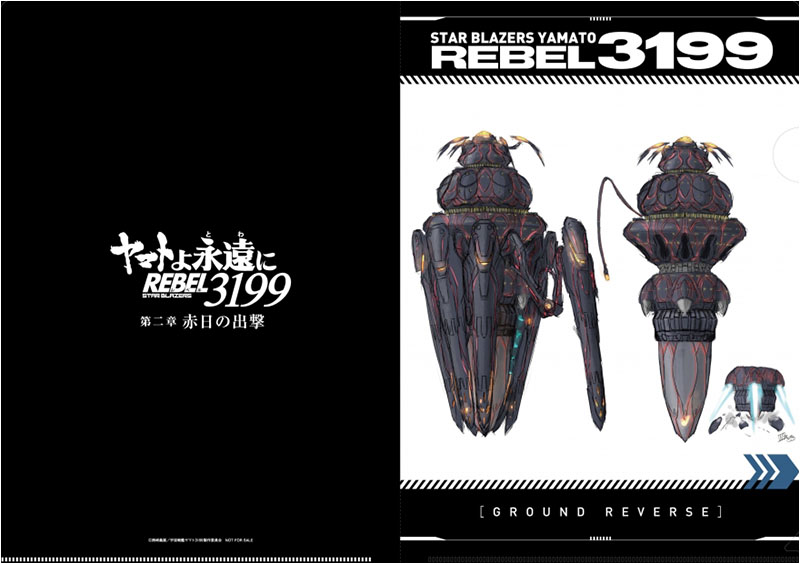 REBEL 3199 Chapter 2’s 4th week in theaters commenced with the last of the freebies. This time it was a clear file depicting Dezarium’s Grand Reverse, though it was mistranslated as “Ground Reverse” on the front. The color images are by Dezarium mecha designer Mika Akitaka.