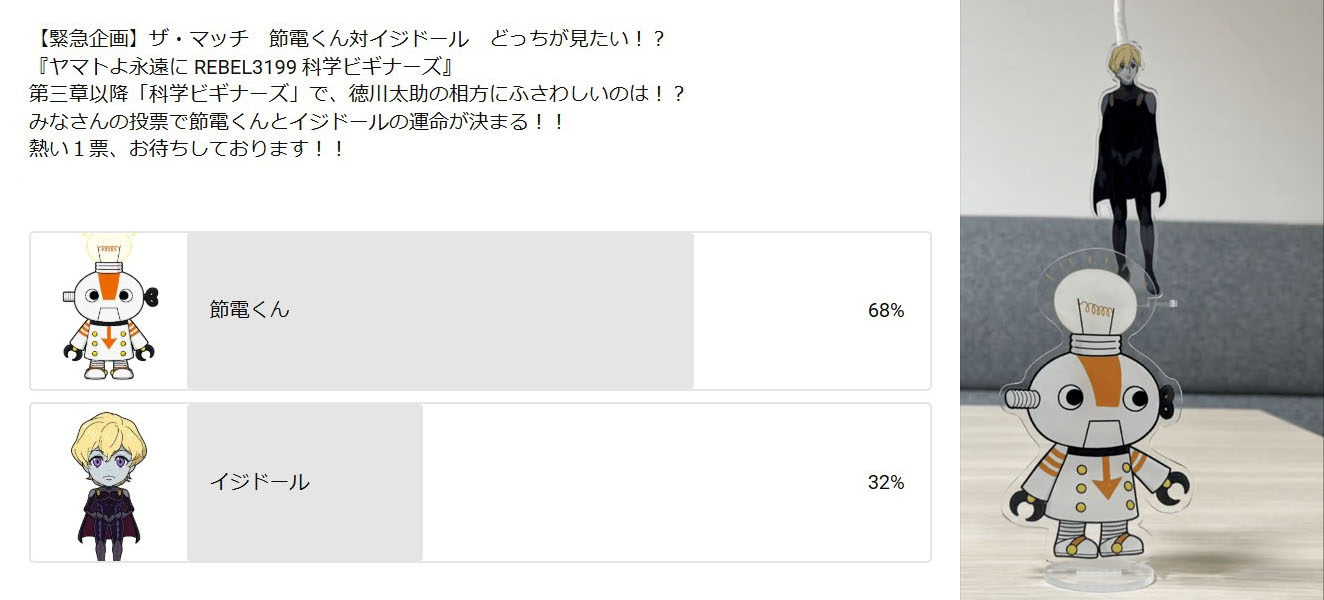 The final votes were tallied, and Energy-Saver Kun prevailed in the popularity vote against Isidore. What does this mean for future appearances in the Science Beginners video series? We’ll probably find out in April.