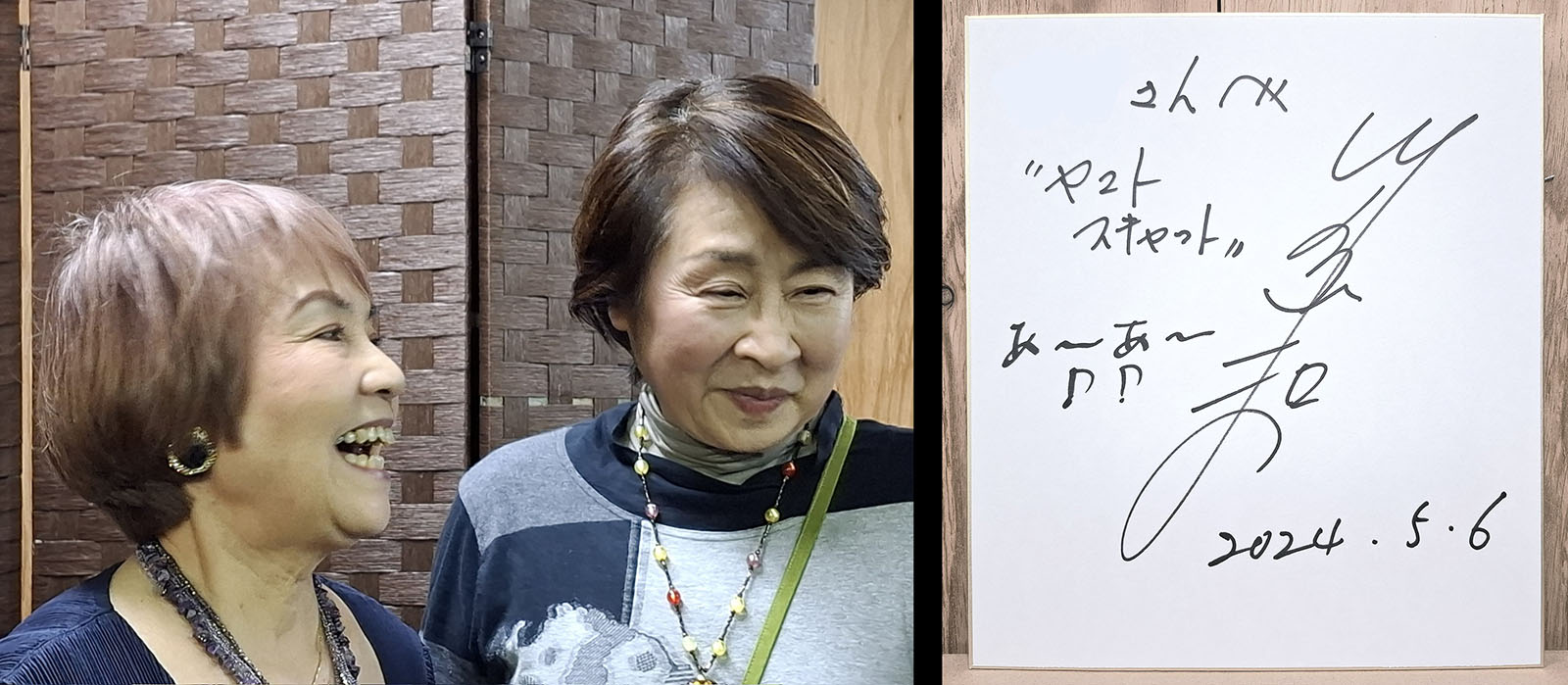 Audience members were surprised to find another star in their midst, none other than Yoko Asagami, voice of the original Yuki. At right, a Kawashima signature from a May 6 event that included the words “Yamato Scat” and “A~A~”