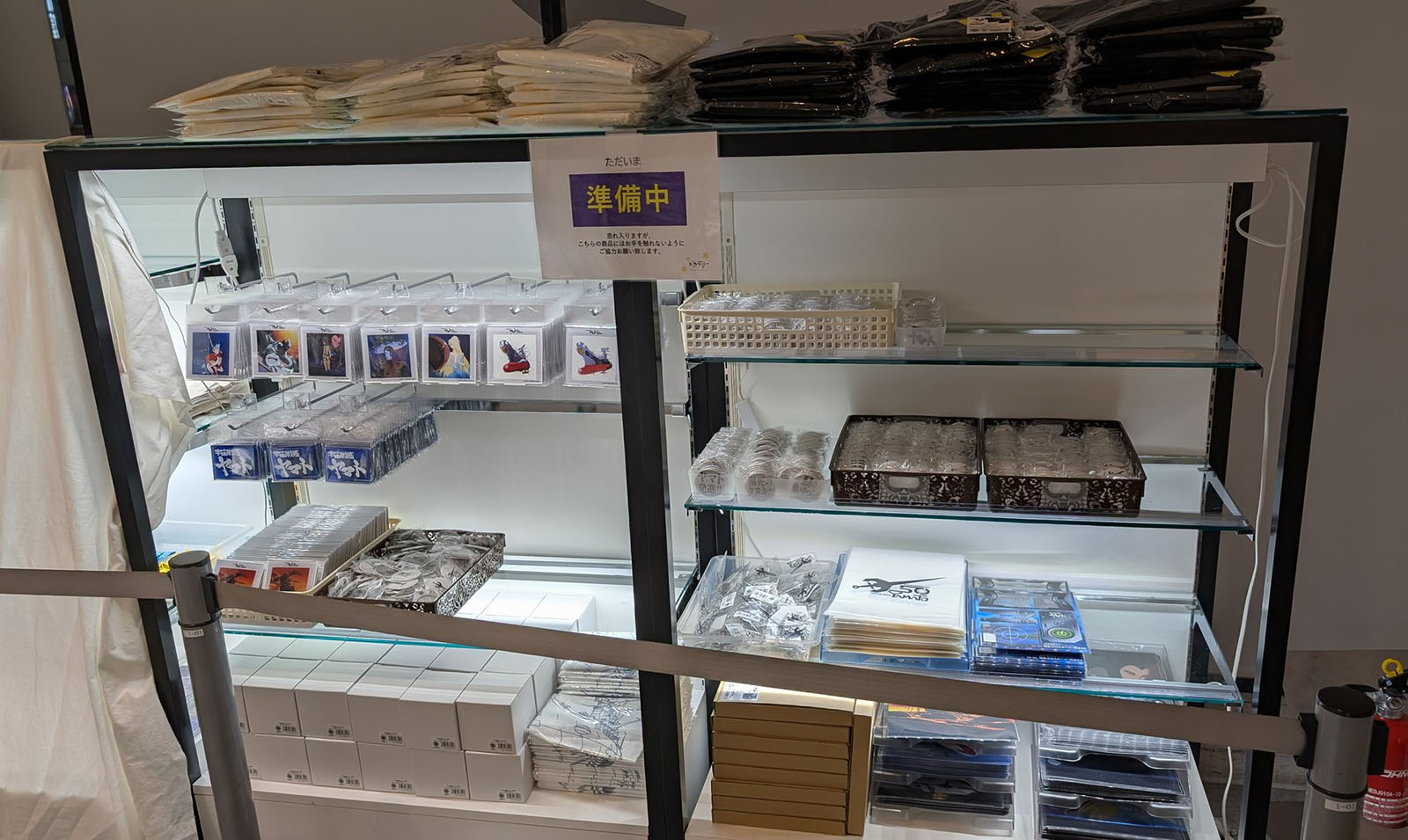 The top sellers were a tea mug decorated with quotes from Captain Okita and an acrylic stand mimicking the WMG cross gauge with multiple backdrops. These products were the first to disappear from theater shelves and sold out very quickly when offered online that same day.