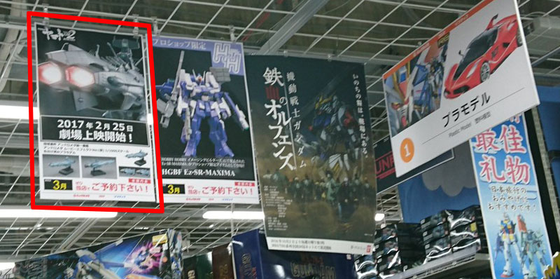 Twitter user Infinity Lagna made a nice discovery in a Bic Camera store in the Yurakucho district of Tokyo on February 3: an ad for the 1/1000 Andromeda model coming in March. Another nice surprise was to hear it being promoted on the PA system.