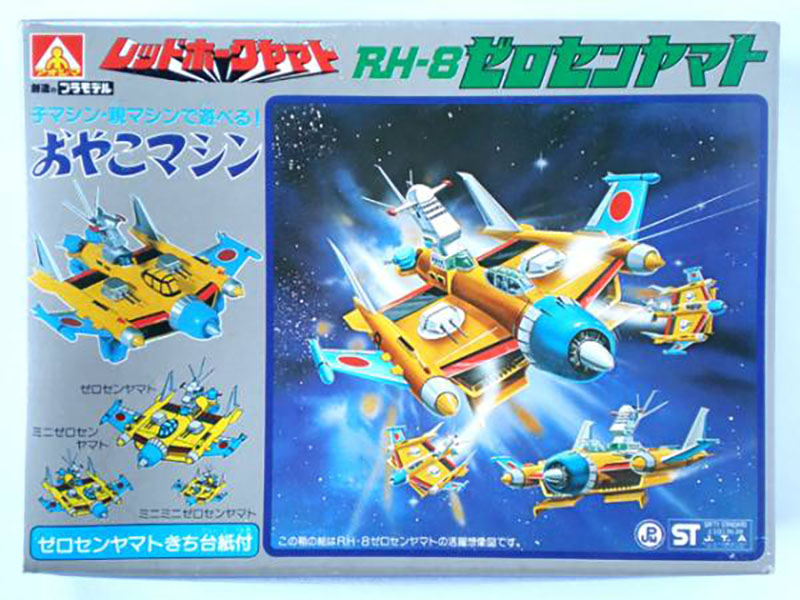 In keeping with the gimmick, Redhawk Yamato could break up into four subsections that functioned as independent vehicles. Promoted at 1/500 scale, this whopper of a kit stretched to almost 21 inches when completed, easily nosing past Bandai’s 1/500 Yamato released in the same year. Because of its well-timed release in 1978, this kit became Aoshima’s biggest seller and is thus the one most remembered by Japanese fans who were lucky enough to be there.
