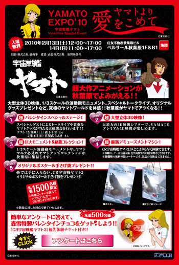 When the teaser commercial for the live-action Space Battleship Yamato movie aired in Japan on January 1, it ended with a pronouncement: 2010 is the Year of Yamato. And already, reality is living up to the hype. Yamato Resurrection played in Japanese movie theatres throughout the month of January and February, and a steady flow of merchandising built up nicely to a new public event that connected directly back to those of the production years.