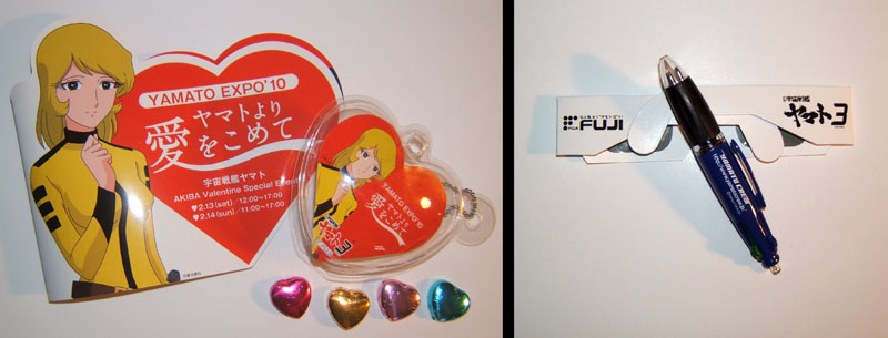 But wait, there’s more! A plastic container of valentine chocolates, 3-D glasses for the 3-D theatre, and a multi-color Yamato Crew ballpoint pen.