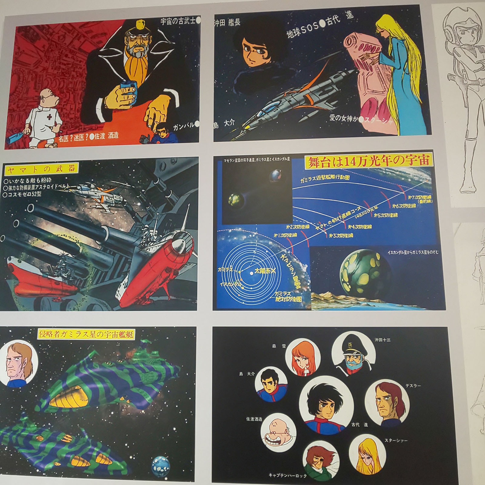 A number of image boards from the early planning stages. Based on Yoshinobu Nishizaki’s idea of a “ship flying through space,” Eiichi Yamamoto (director), Keisuke Fujikawa (screenwriter), and Aritsune Toyota (screenwriter and science-fiction author) each added their own ideas, and the basic story of Yamato was formed, in which a giant spaceship undertakes a long journey to save the Earth.