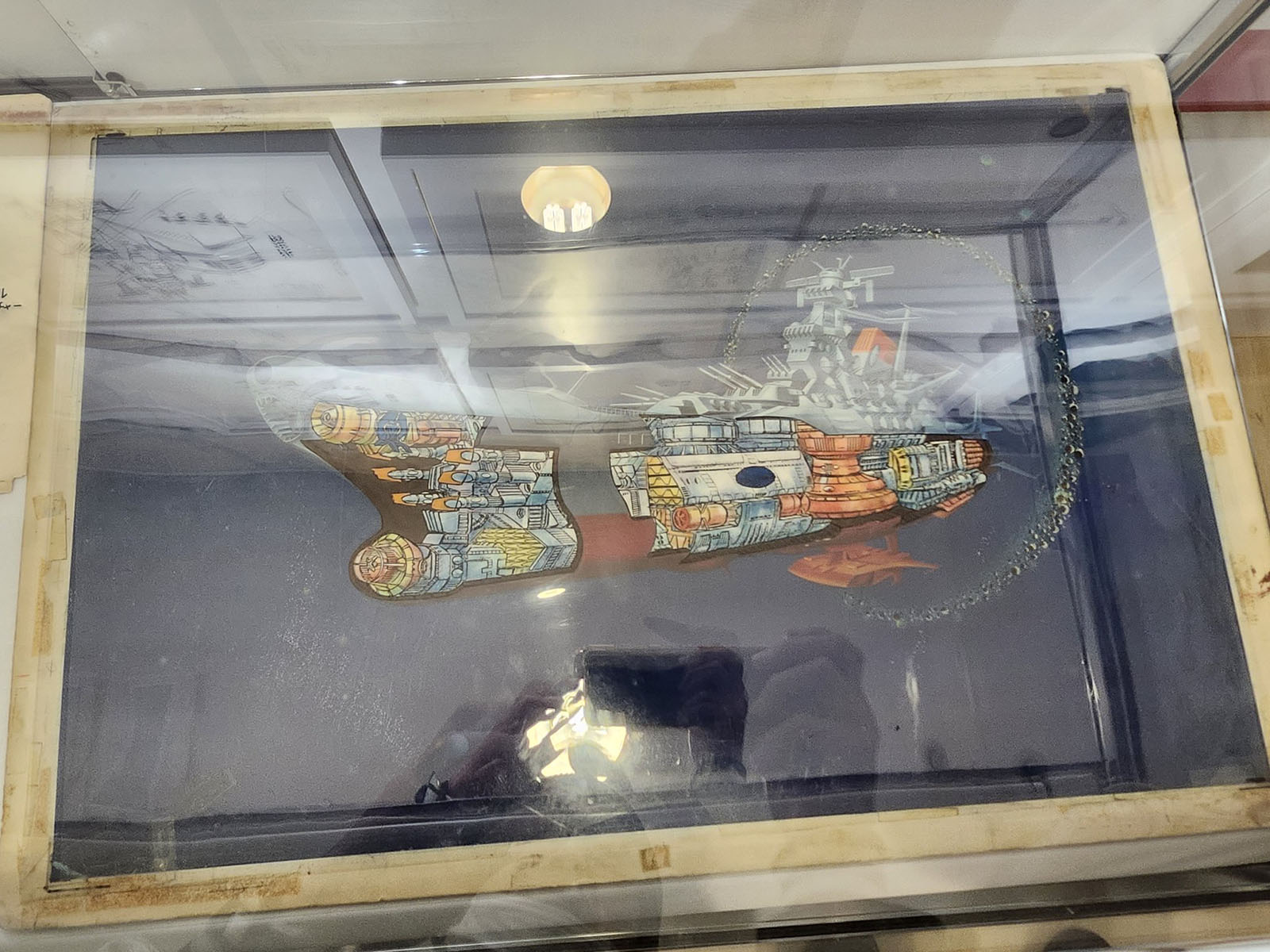 This TV monitor showed the 1974 Yamato pilot film on a continuous loop.