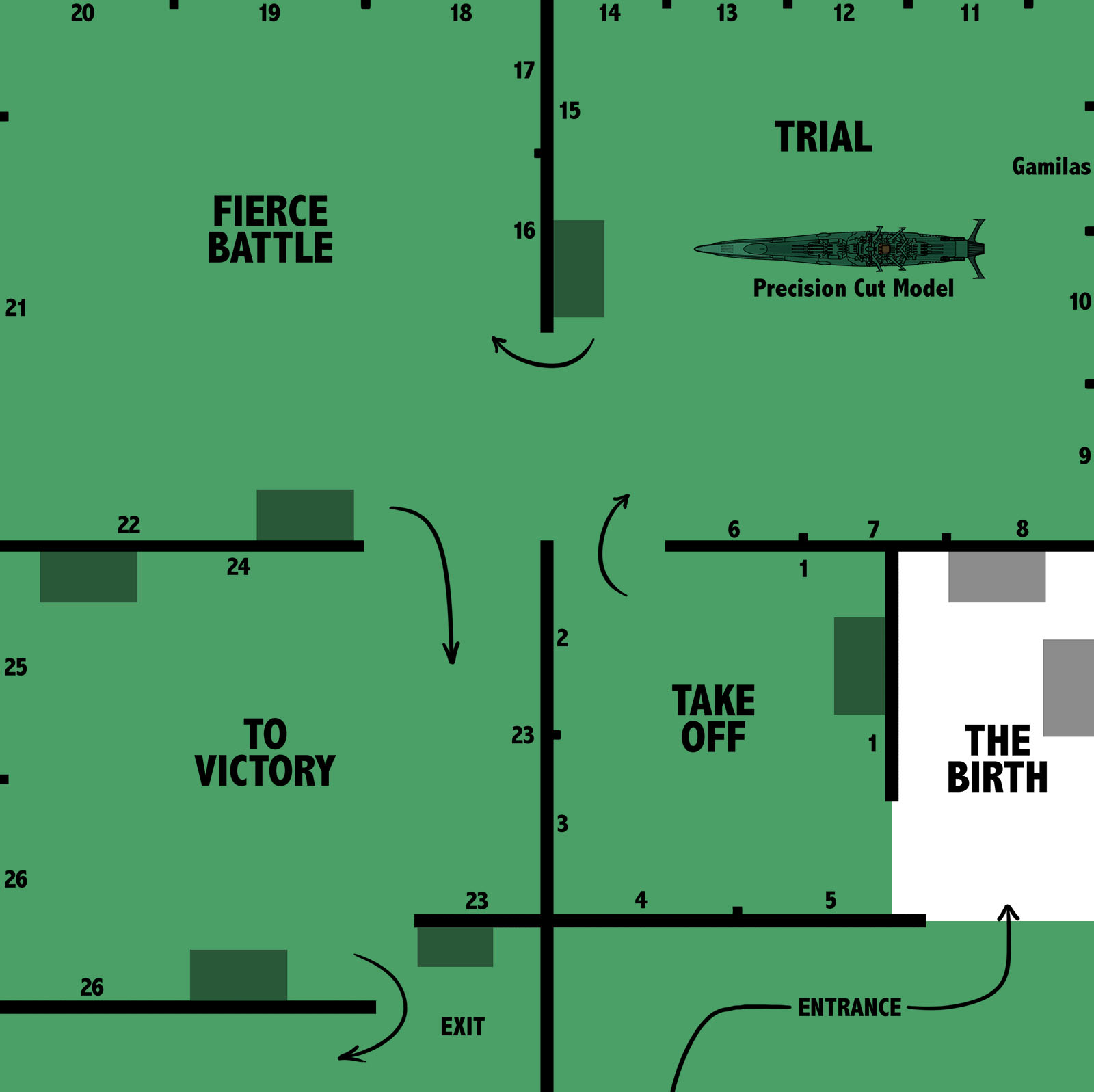 After the first few days, these directional signs were added to ease navigation through the exhibition space. Shima was the natural choice.