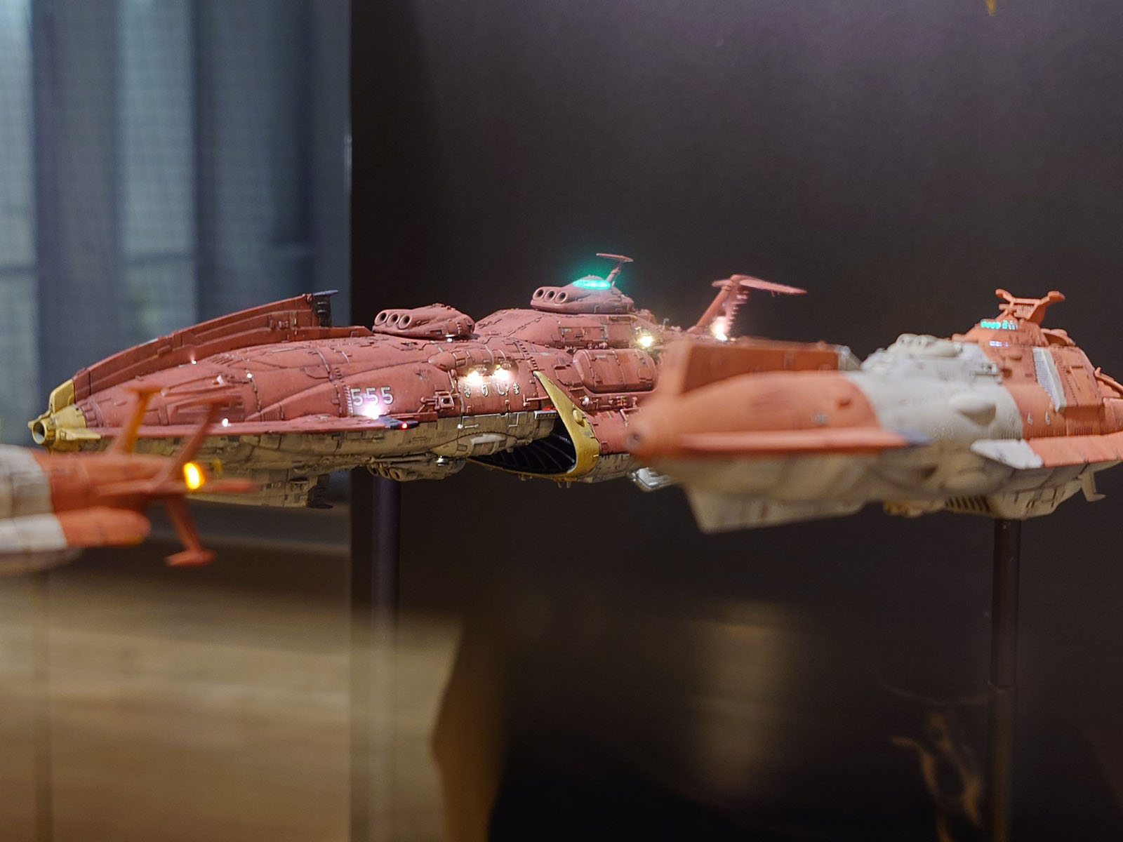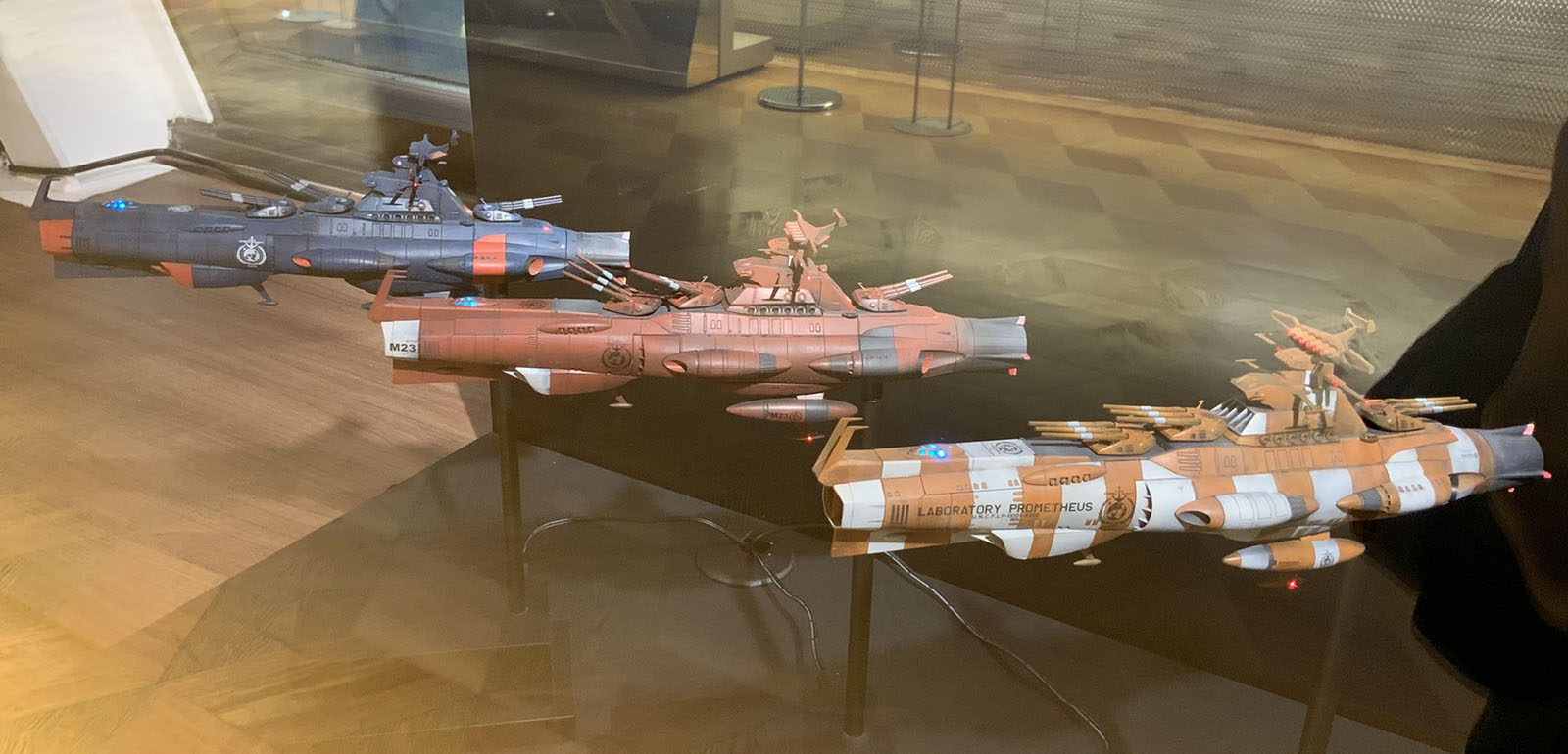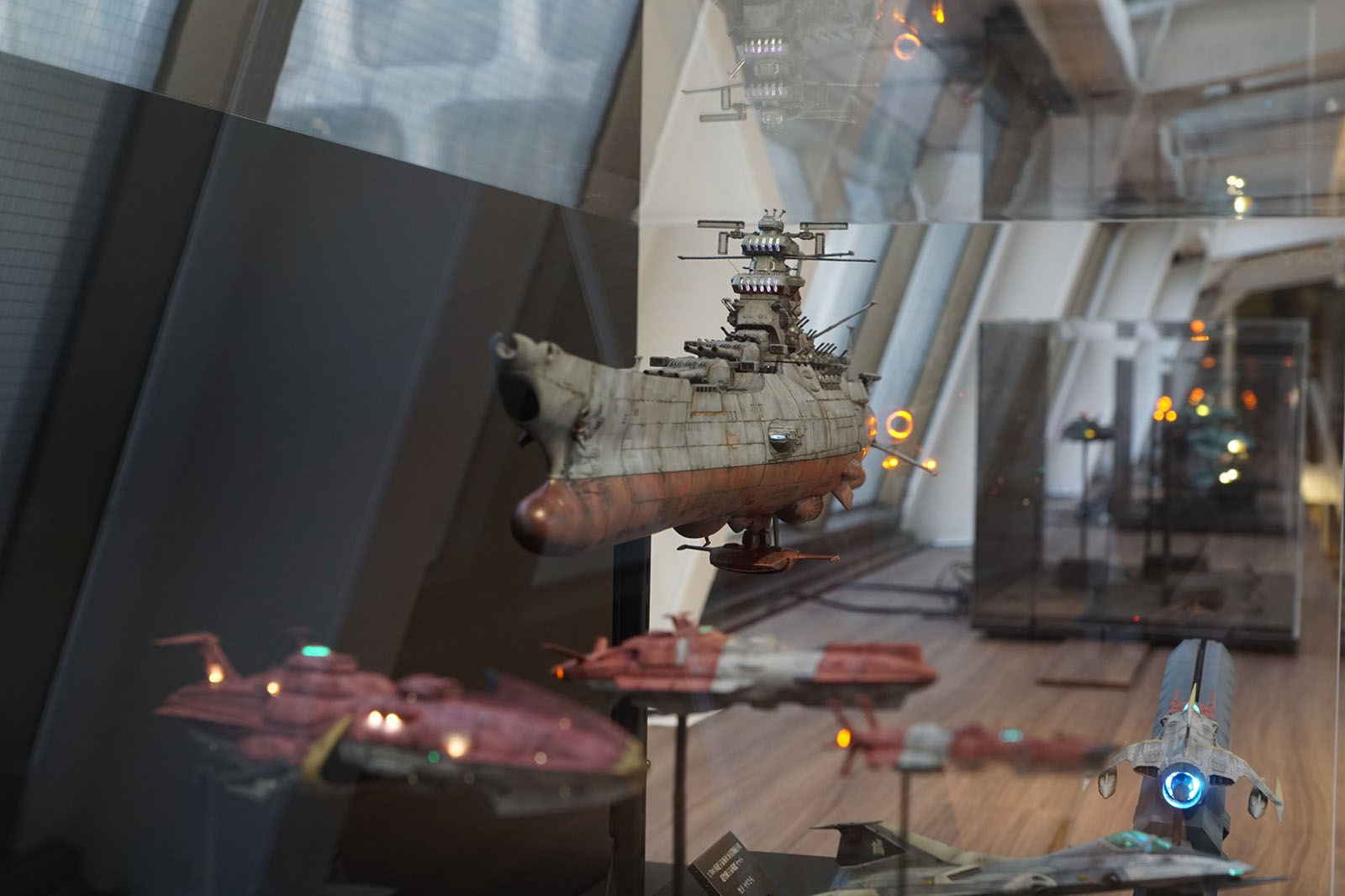 Several model kits, built by experts, were loaned to the exhibition and displayed in the passageway that connected the twin buildings of the Seibu department store.