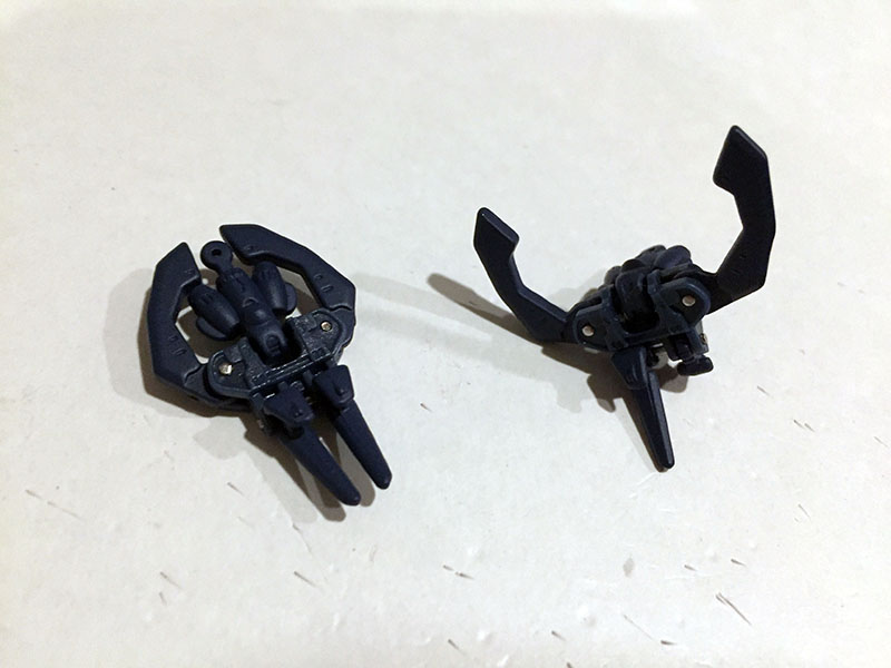 After almost an hour (and a LOT of 4-letter words) the anchors are assembled. The one on the right shows you what the hinge pins do. I’ll be honest, I didn’t enjoy ANY of this process. As soon as I saw how tiny those pins were, and the tension required to get them into place, I just KNEW one of them would pop off and fly across the room. And of course it did. It launched into the air and I heard it land somewhere.