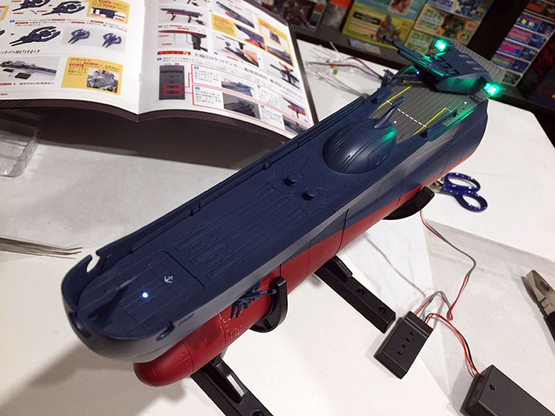 And then…ELECTRONICS SUCCESSFUL! All the lights come on, the anchor chains raise and lower, the first gun turret rotates, and the individual cannons go up and down just like they’re supposed to. Oh, happy day!