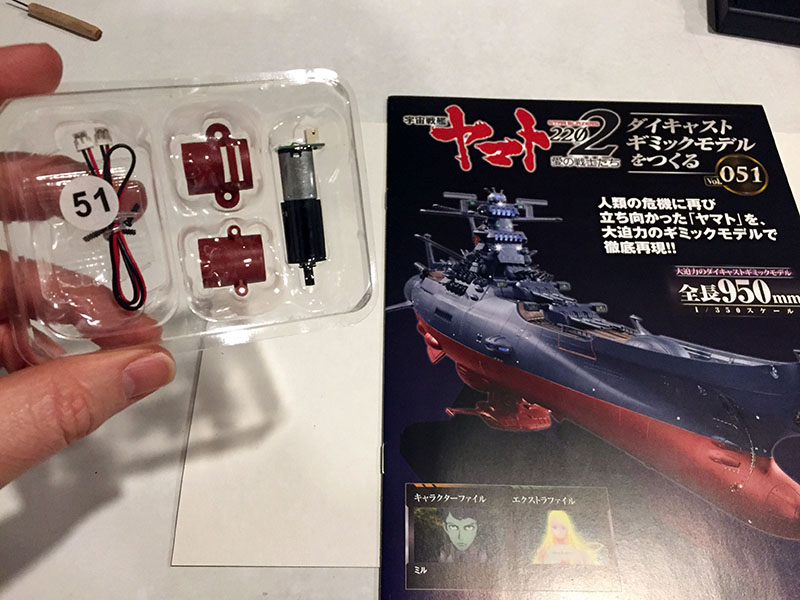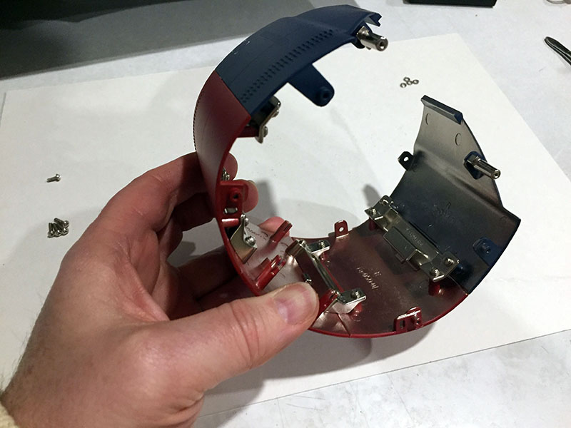 Done. But there’s an issue. This is the motor that causes the cannon barrels to rise and lower, and its notch (at the bottom) is out of alignment. I had to take the pliers to it. If I didn’t, the barrels wouldn’t settle to a neutral, centered position when turned off.