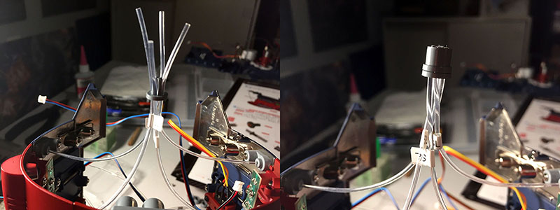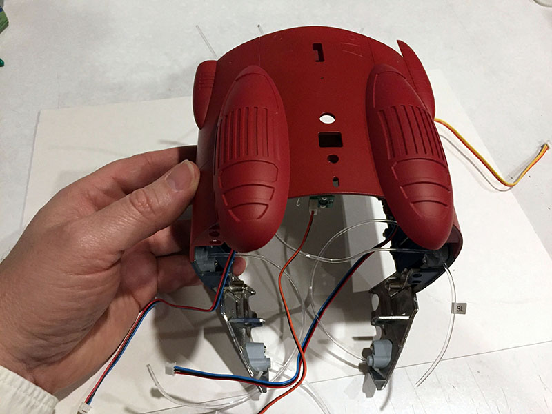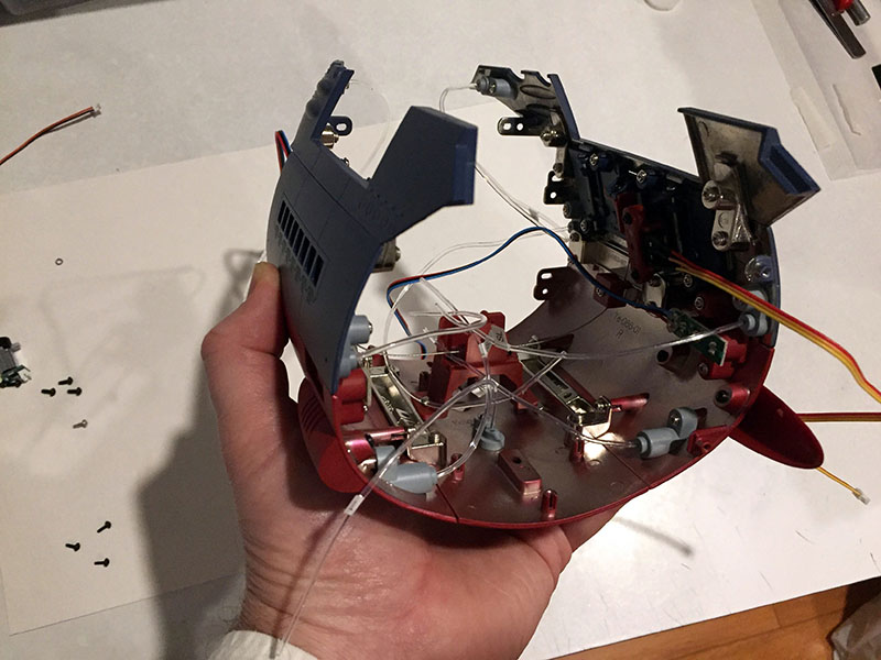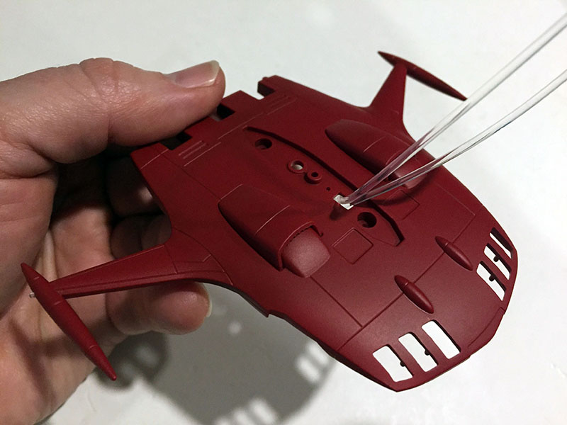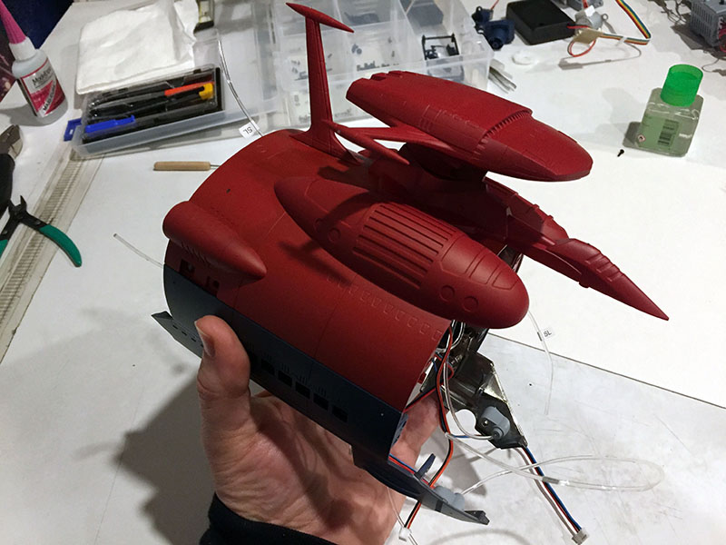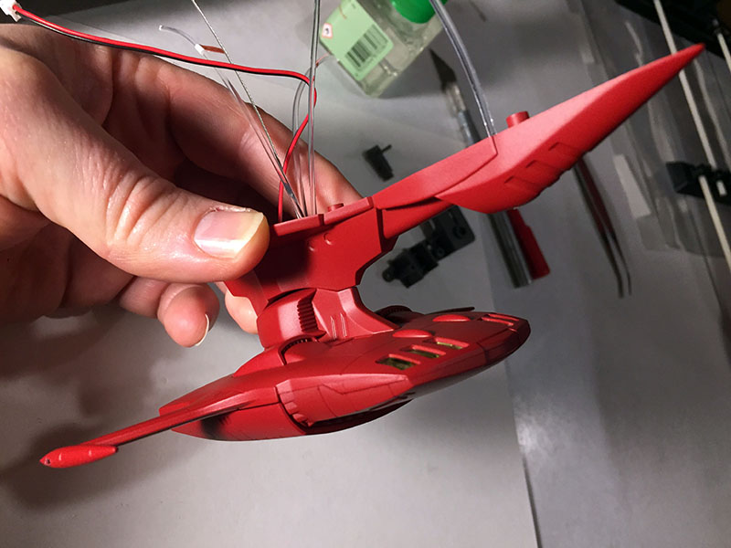 It will include another wire, like the one that now joins the missile launcher doors. Then we’ll finish the upper half and bolt it to the mounting piece.