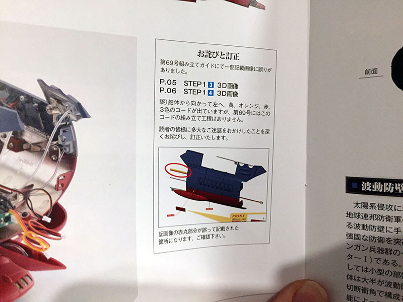 This is cute; they threw in an apology for an error in Volume 69. The instructions showed an orange wire that wasn’t supposed to be there yet. It had no effect on construction, though.