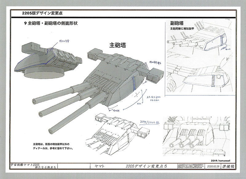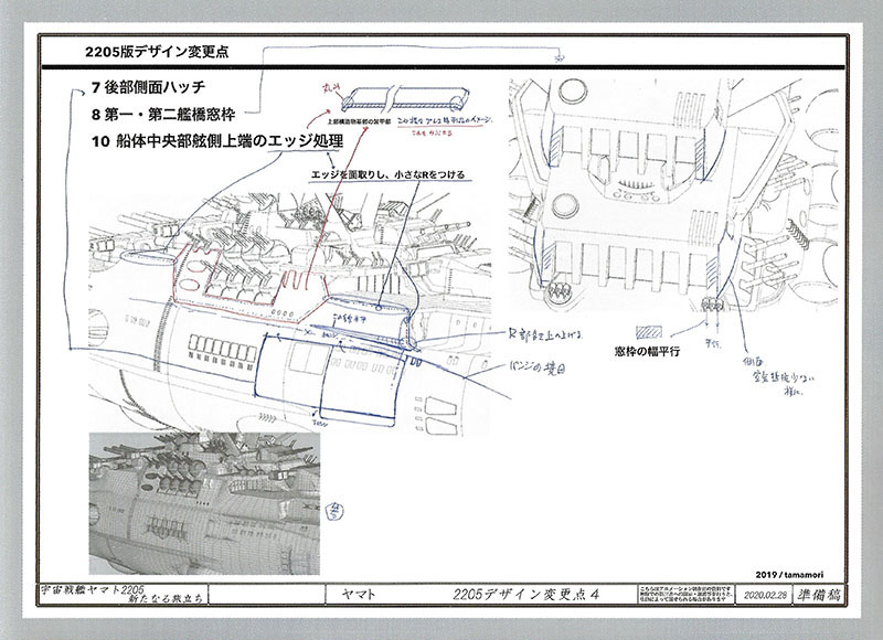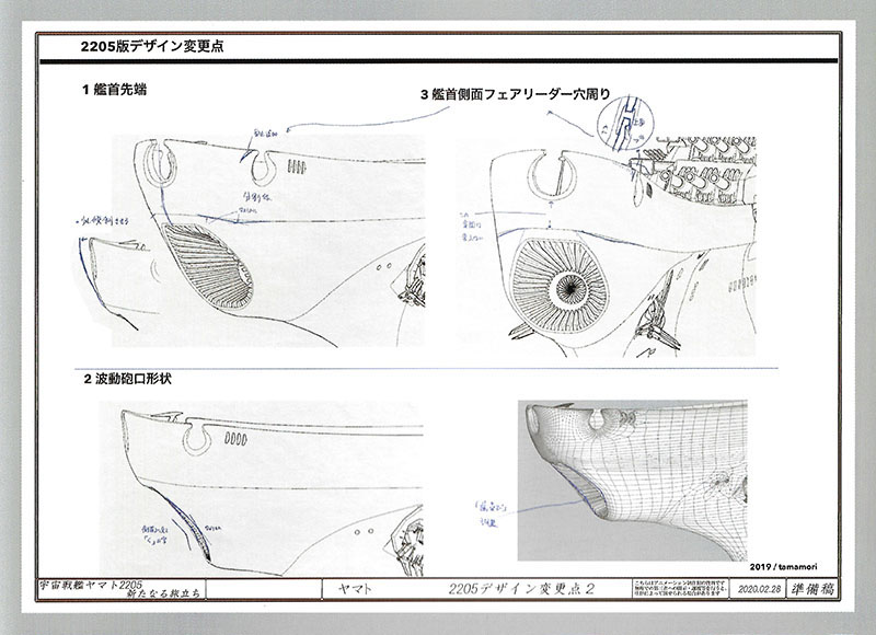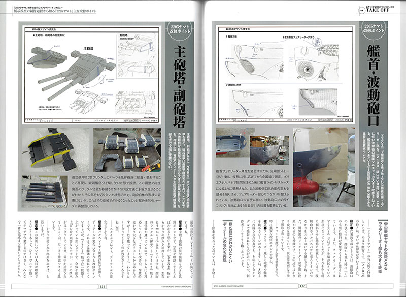 Major points of the 2205 Yamato redesign as seen in the process of making the display model