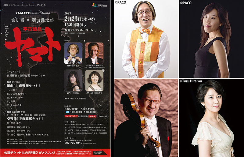 “Yamato Meets Classics” was first announced for April 2020, but a global pandemic rudely got in the way. Now, finally, it’s back on the calendar. Scheduled for February 23 at the Acros Fukuoka Symphony Hall (way down at the southern end of Japan), it will bring together Composer/Conductor Akira Miyagawa, his daughter pianist Chiko Miyagawa, violinist Fuminori Shinozaki, and vocalist Michiko Hayashi with a full orchestra to perform both the Yamato Suite and the Grand Symphony, a gigantic undertaking.