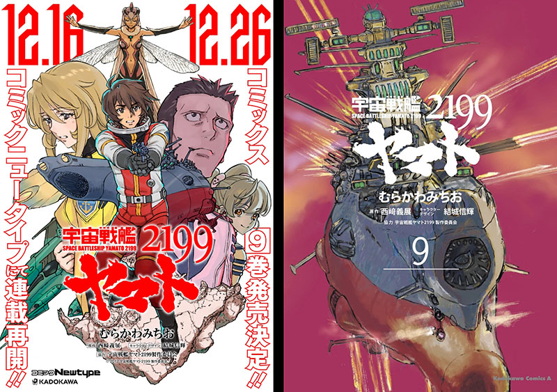 The rumors are true! Michio Murakawa’s Yamato 2199 manga adaptation, suspended since June 2016, will resume publication in December! Monthly chapters will begin free serialization at Comic Newtype on December 16, and the next collected paperback volume (shown above right) will be published December 26.