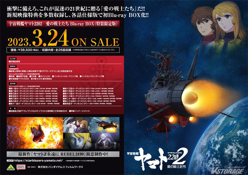 A new Yamato 2202 box set was announced for release on March 24. This one will contain all the bonus features that were available on the original seven volumes, newly augmented with stage greetings from each premiere, live Yamatalk events, and more. It will also be sold in a new slipcase with Andromeda art. More news on this one as it happens.