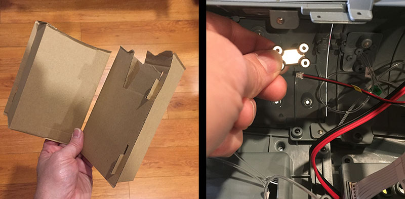 Left: I’m working in tight quarters now, so I have to use the smaller screwdriver. Predictably, there’s not enough torque to get the screws in all the way. But they hold.