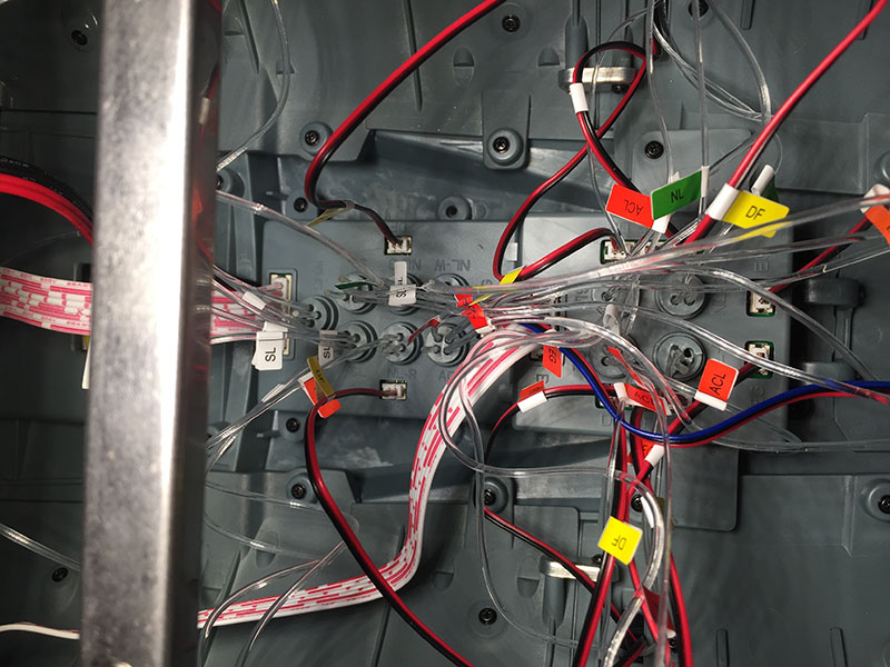 All right, here’s where we dive in for the last battle; the two distributor boxes in the aft section. The wires plug in easily enough, but there are 11 remaining ports for fibers that have to be collected and capped. This is going to be very unpleasant.
