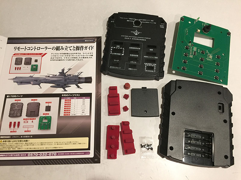 All the parts for the remote controller. They come together in less than five minutes.