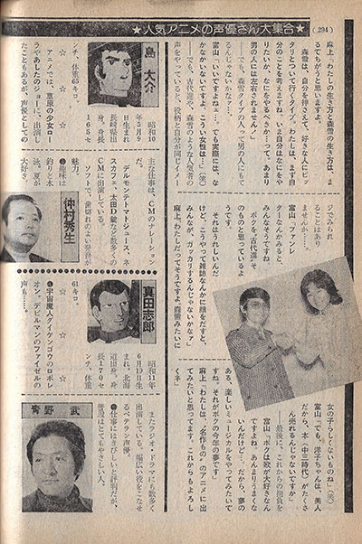 Akira Kamiya is probably the most popular among girls. He is also very active in the band Slapstick. Among women, Noriko Ohara (Sabera) and Eiko Masuyama (Mine Fujiko) are also popular, It is surprising that their voices sound a little bit evil.