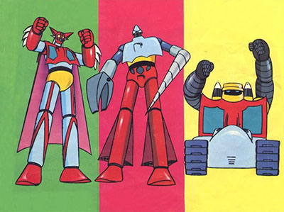In April 1974, another groundbreaking anime work appeared: Getta Robo (Fuji TV), featuring the original transformable robot. Manga artist Go Nagai had already made a big hit with Mazinger Z (Fuji TV), which had begun airing two years earlier. Getta Robo, co-created with Ken Ishikawa of Dynamic Pro, had a maverick charm.