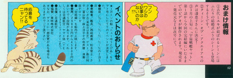 ③ Home videos from Episode 1 of Space Battleship Yamato all the way through The Final Chapter will be produced from the beginning of March. Sales information will be published next issue.