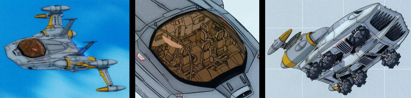 Tamamori: It is a “boat,” so for example, in the markings around the thrusters I was carefully to give it a different feeling than the fighters. It’s contradictory that something must be light to fly in the air and heavy to work as a submersible, so I worked out the logic in various ways.