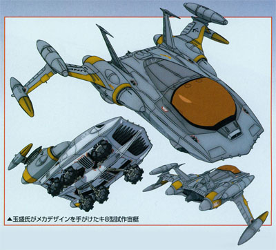 Tamamori: The Ki 8 is fun because it’s a mecha packed with gimmicks, very much like a toy or plamodel. (Laughs) In the story it makes a spectacular landing on a planet. You’ll see a series of steps in which it separates from Yamato, glides in the sky, lands in the sea, and surfaces in a swamp. It changes form between flight and landing. The wheels have a characteristic shape that allows them to perform on rugged, off-road terrain, and the width of the wheels is variable. It can be used in various environments.