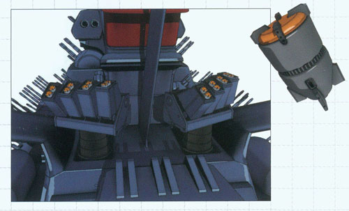 LEFT: The depth-charge launcher makes a spectacular showing in the movie. Since the Wave-Motion Gun has been sealed, One of the highlights is to see how Yamato survives a crisis.