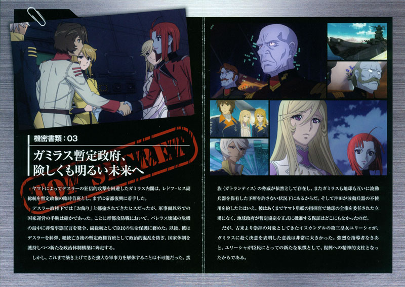 After Yamato saved them from the fanatical attack by Dessler, the Garmillas cabinet began reconstruction under Vice President Redof Hyss, now the head of the interim government.