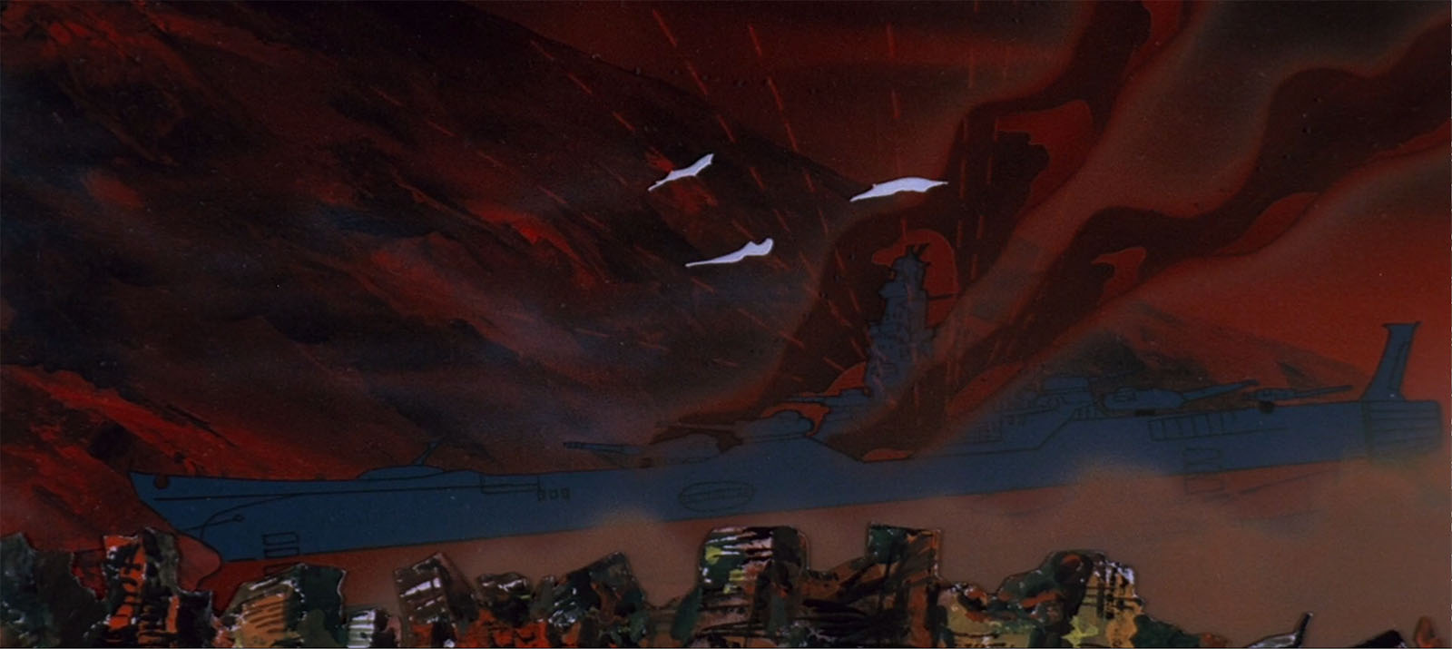 Susumu fought back and looked to the rear deck. The Cosmo Zero was still safely stored there. He fired his cosmo gun at a saucer that was approaching him, then turned around and rushed back inside Yamato.