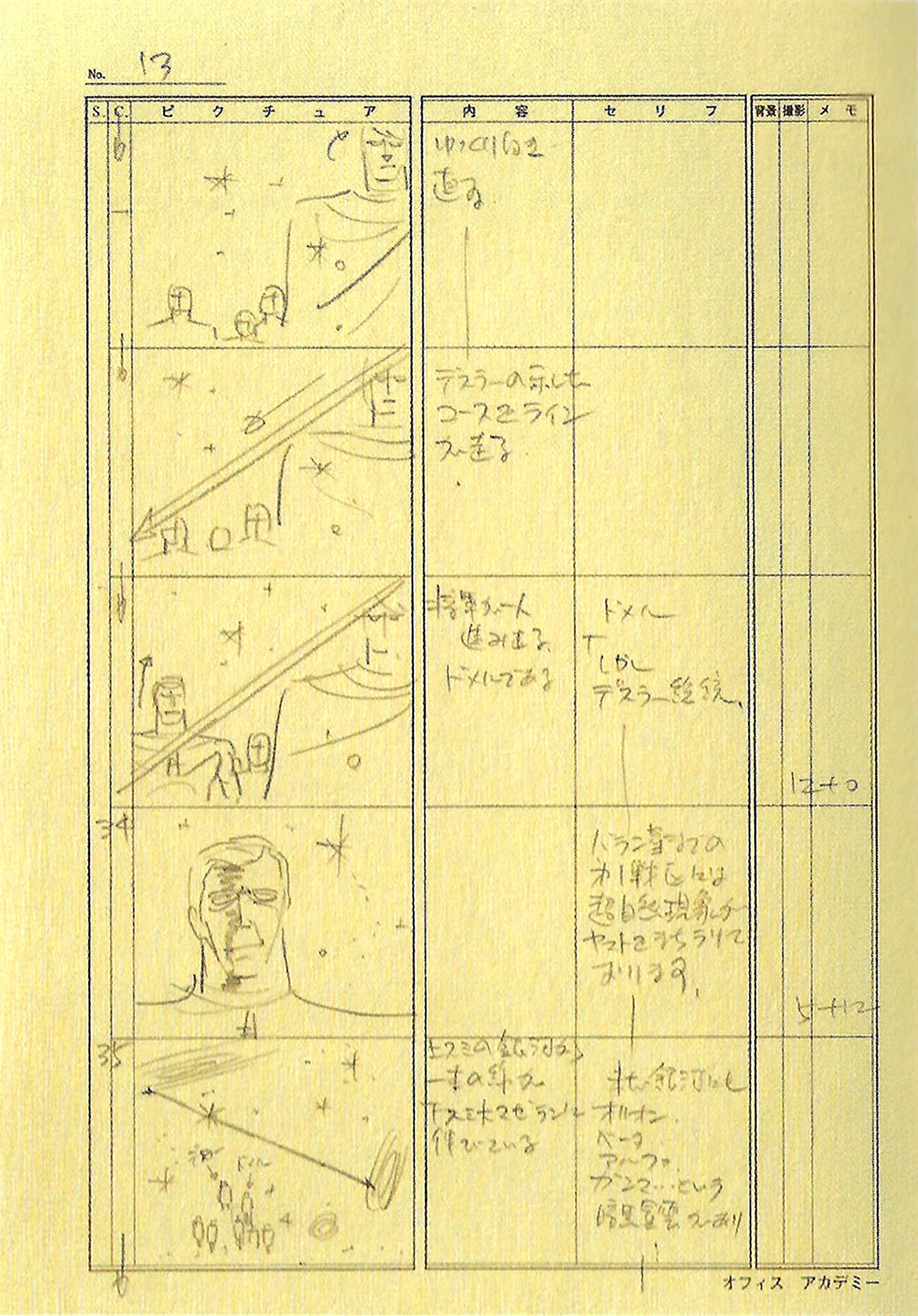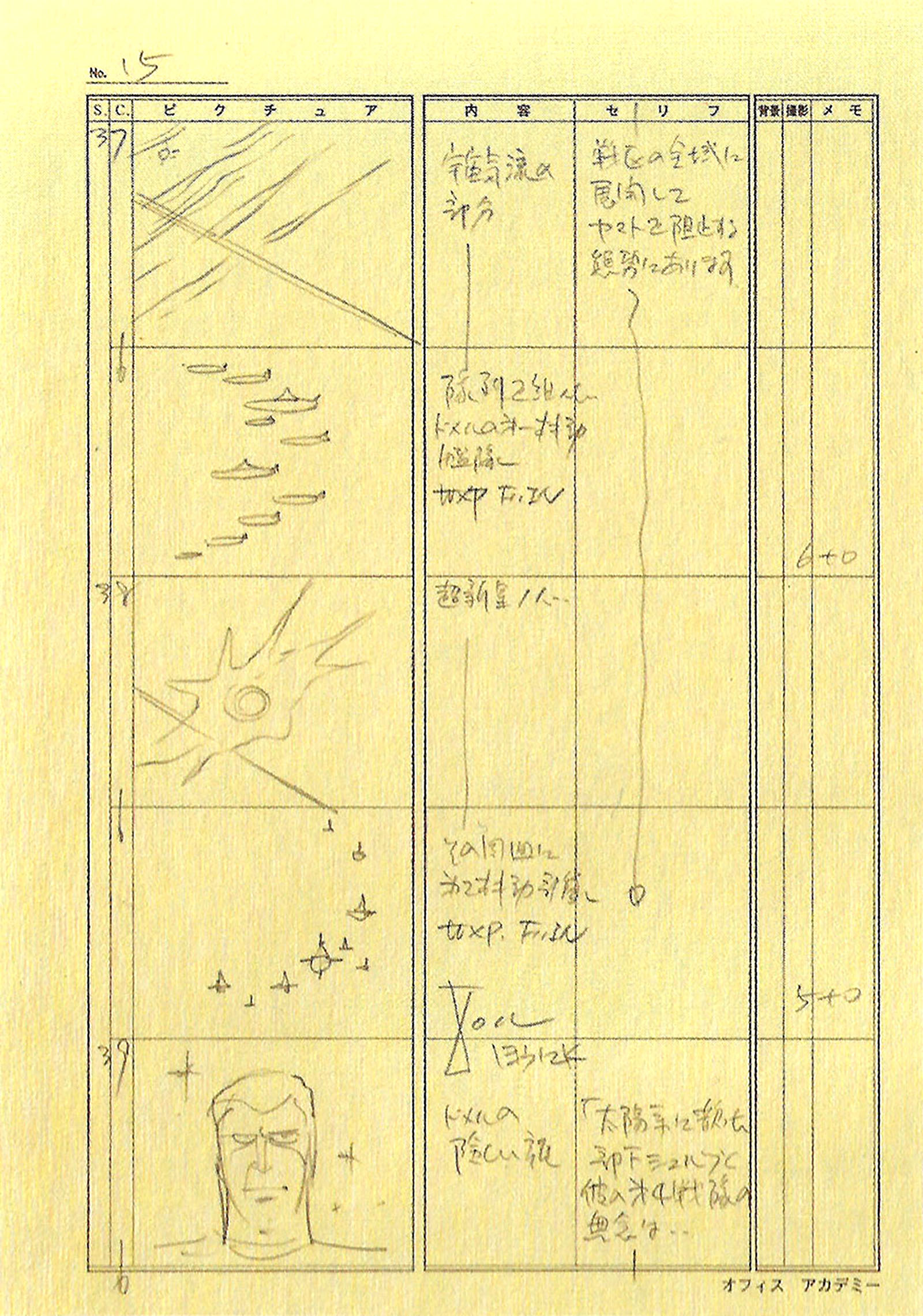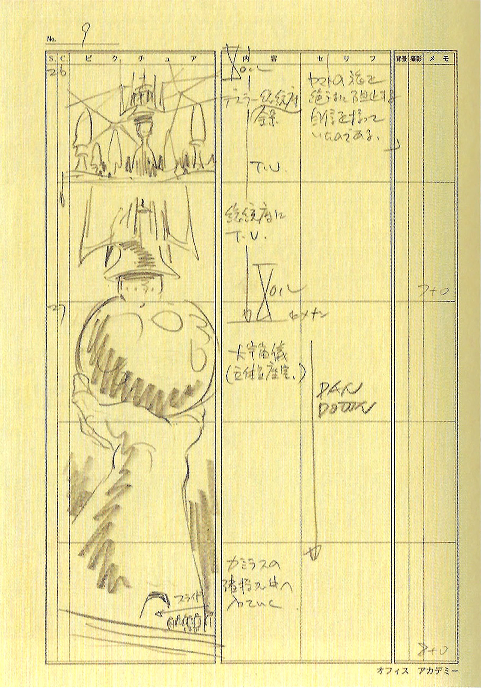 Producer Nishizaki Yoshinobu’s production style was unparalleled, and the quality and quantity of the staff surpassed the scale of normal TV anime production, but the production schedule was unpredictable due to frequent meetings. Yasuhiko participated in this work mainly as a storyboard artist. Part of the storyboard for episode 11, which Yasuhiko worked on with Noboru Ishiguro Noboru, still exists. Here we present all of Yasuhiko’s storyboards that have been confirmed.