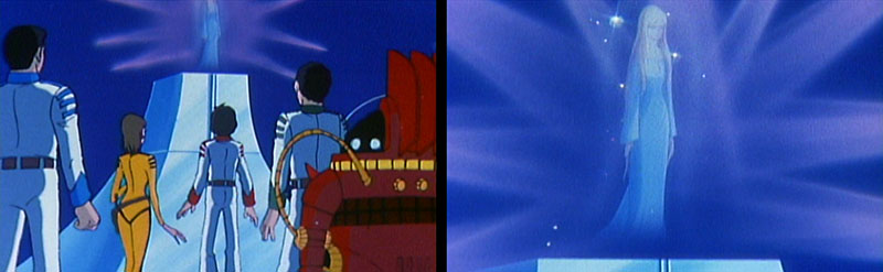 The last item refers to the hologram seen only in the alternate ending footage created for the theatrical release in which Starsha is a hologram “ghost.” This ending was only seen in theaters. When the film went to TV and home video, the original ending was restored. Afterward, the alternate ending was released as a home video bonus feature.