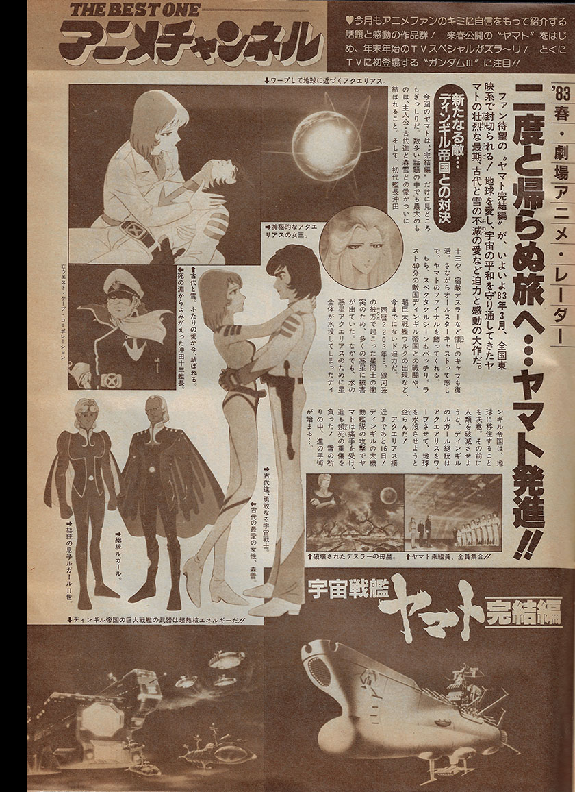 The long-awaited Yamato Final Chapter will finally be released nationwide in March 1983 at Toei theaters! This powerful and moving masterpiece features the heroic end of Yamato, a ship that loved Earth and protected the peace of the universe, as well as the undying love between Kodai and Yuki.
