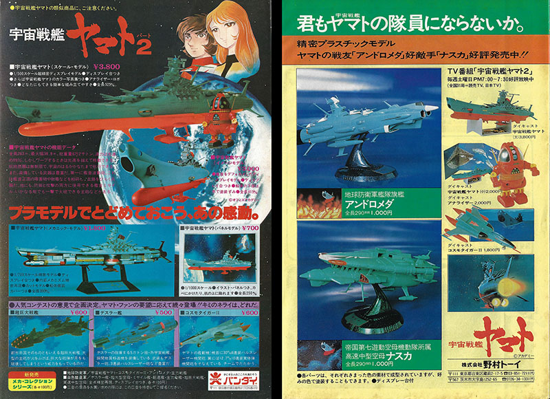 Left: ad for Bandai model kits | Right: ad for Nomura toys and models
