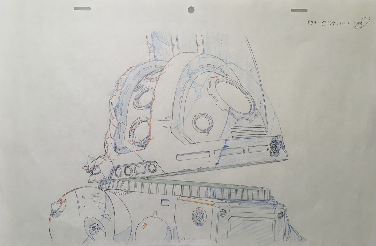 This image was drawn from scratch, based on the upshot that had been done earlier. The proportions of the figure are closer to human proportions than the setup drawing because it is the figure that Sado saw at that moment. The pose is not as if the machine had moved to that position, but as if it had rushed into the scene! I tried to make him look as if he was there right after that. In the previous shot, I tried to capture the situation from an objective angle. If you look closely, you can see the neck of the 3DCG Analyzer popping up, just like in the 1974 version. It was as if the connected images conveyed beyond words that Analyzer was a member of Yamato‘s crew rather than just a machine.