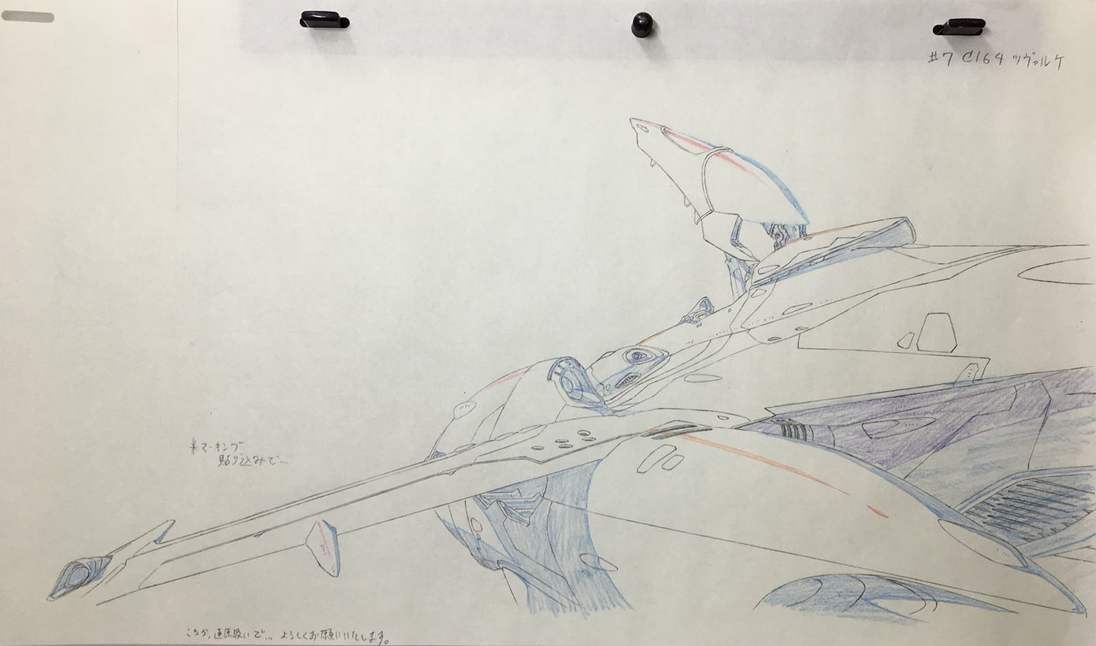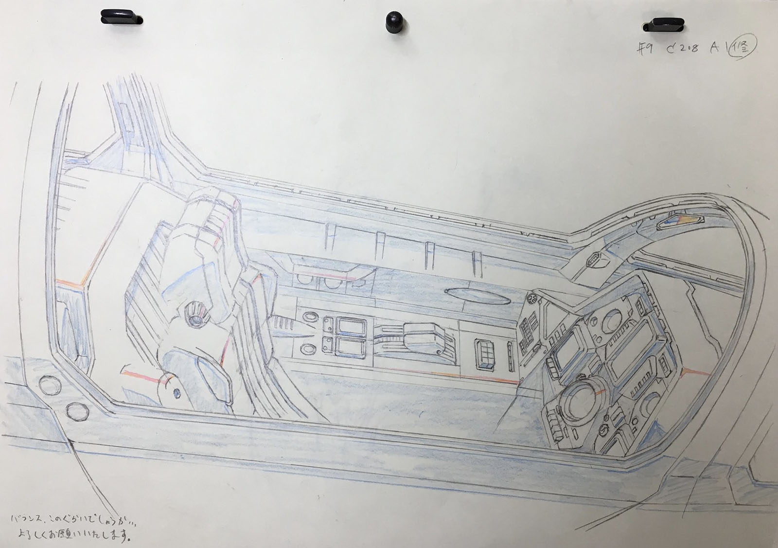 Mr. Yuuki drew the canopy and the backrest in a very simple way, along with corrections to the figures, but when I worked on it alongside the model sheets, I saw that his touch was very precise. The tuning looked even cooler. It was a happy time for me, both as a worker and as a fan. I know it requires a unique technique. However, I hadn’t worked on 2199, so I started helping out on the cockpit with some trepidation. At the end of the series, I was glad to see Yuuki’s excellent work and to understand how great it was.