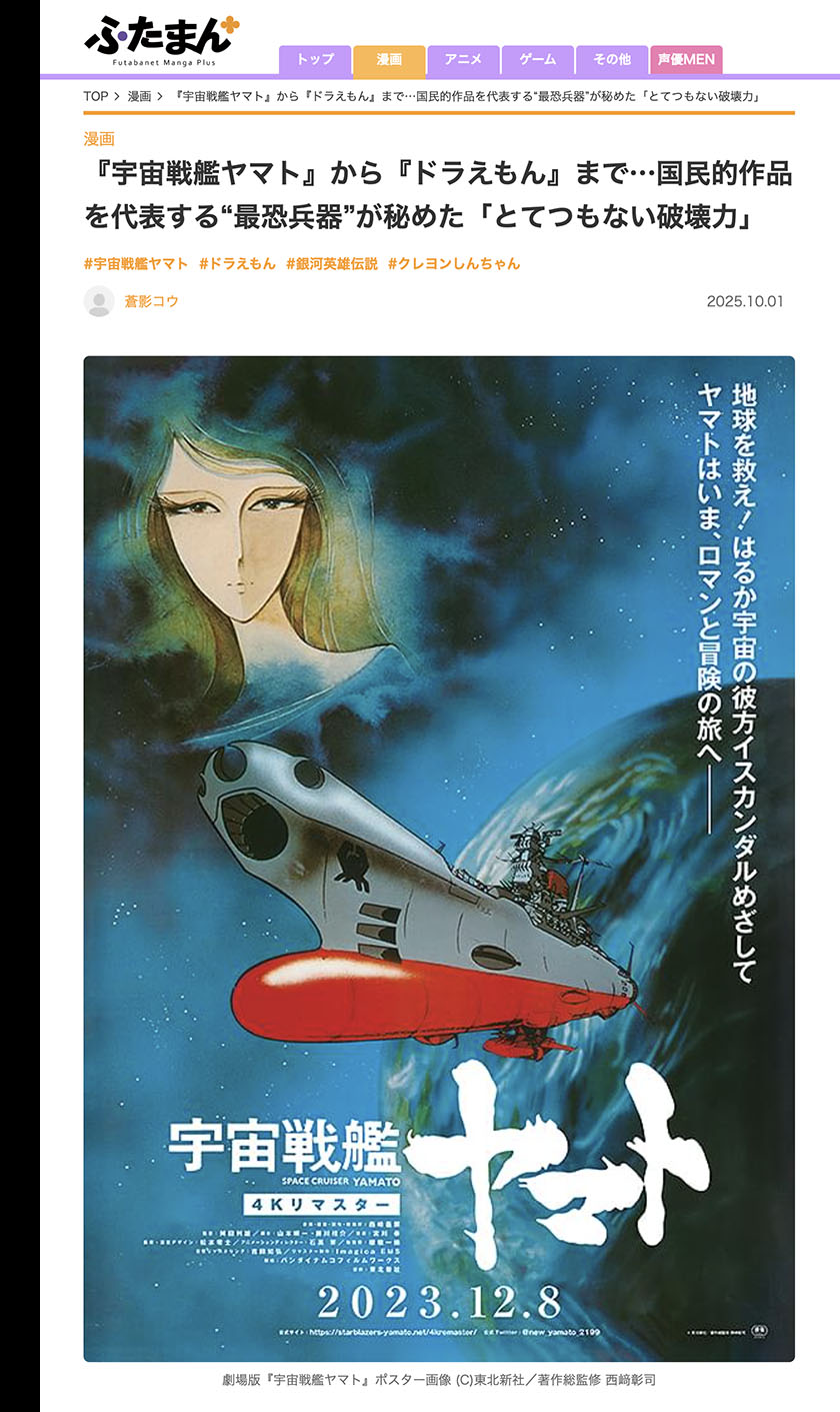 From Space Battleship Yamato to Doraemon…the “Unimaginable Destructive Power” Hidden Within the “Most Terrifying Weapons” Representing National Masterpieces