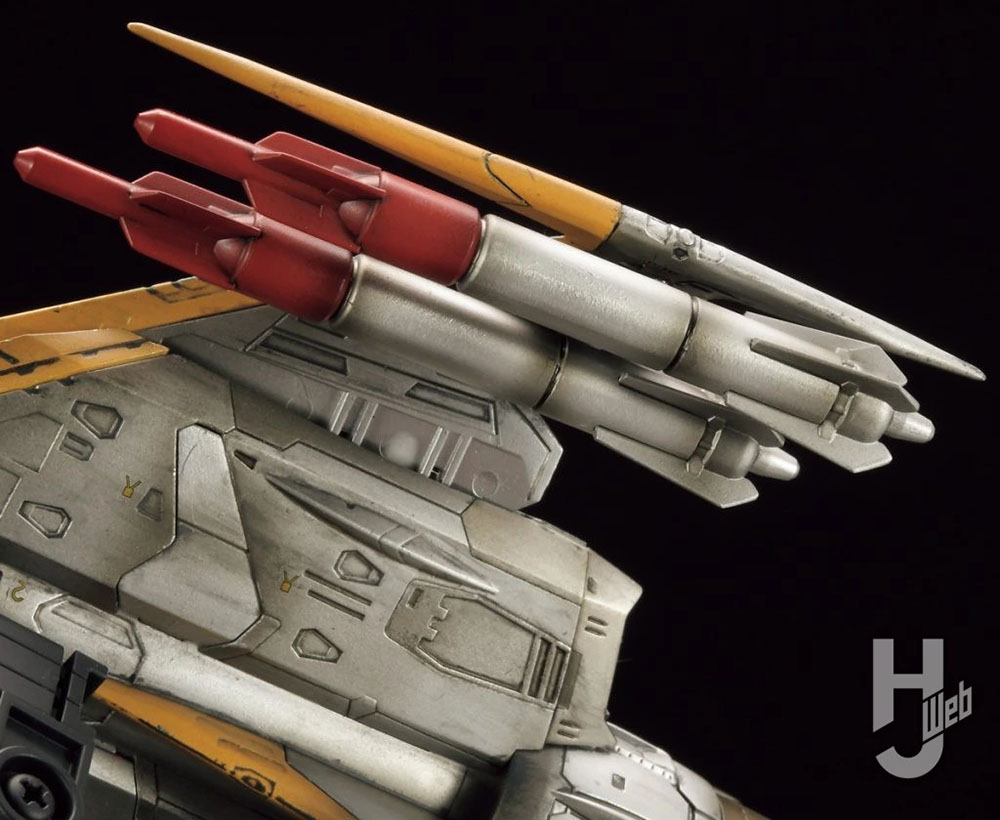 For the silver body, seven different silvers were used: Super Duralumin, Classic Silver, Super Titanium (GSI Creos), Dark Stainless Silver, Star Bright Duralumin, Star Bright Silver (Gaia Nuts), and Flat Silver (NAZCA). Masking was applied along panel lines while considering the overall tone, then shaded with Smoke Gray for balance.