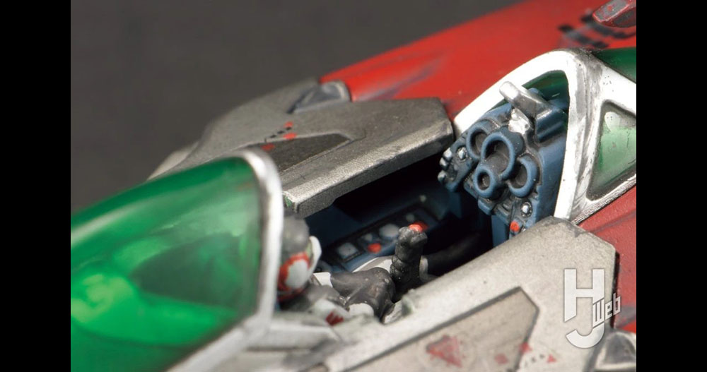 The canopy parts can be inserted/removed to recreate open/closed states. The pilot figure of Kodai and cockpit details are meticulously painted.