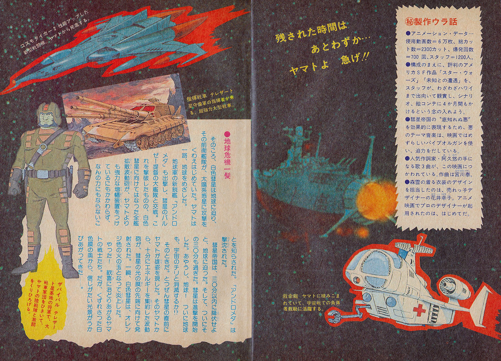 ● Before starting on the composition, the staff went all the way to Hawaii to watch the well-known American SF works Star Wars and Close Encounters of the Third Kind, then spent four months on the script and storyboard.