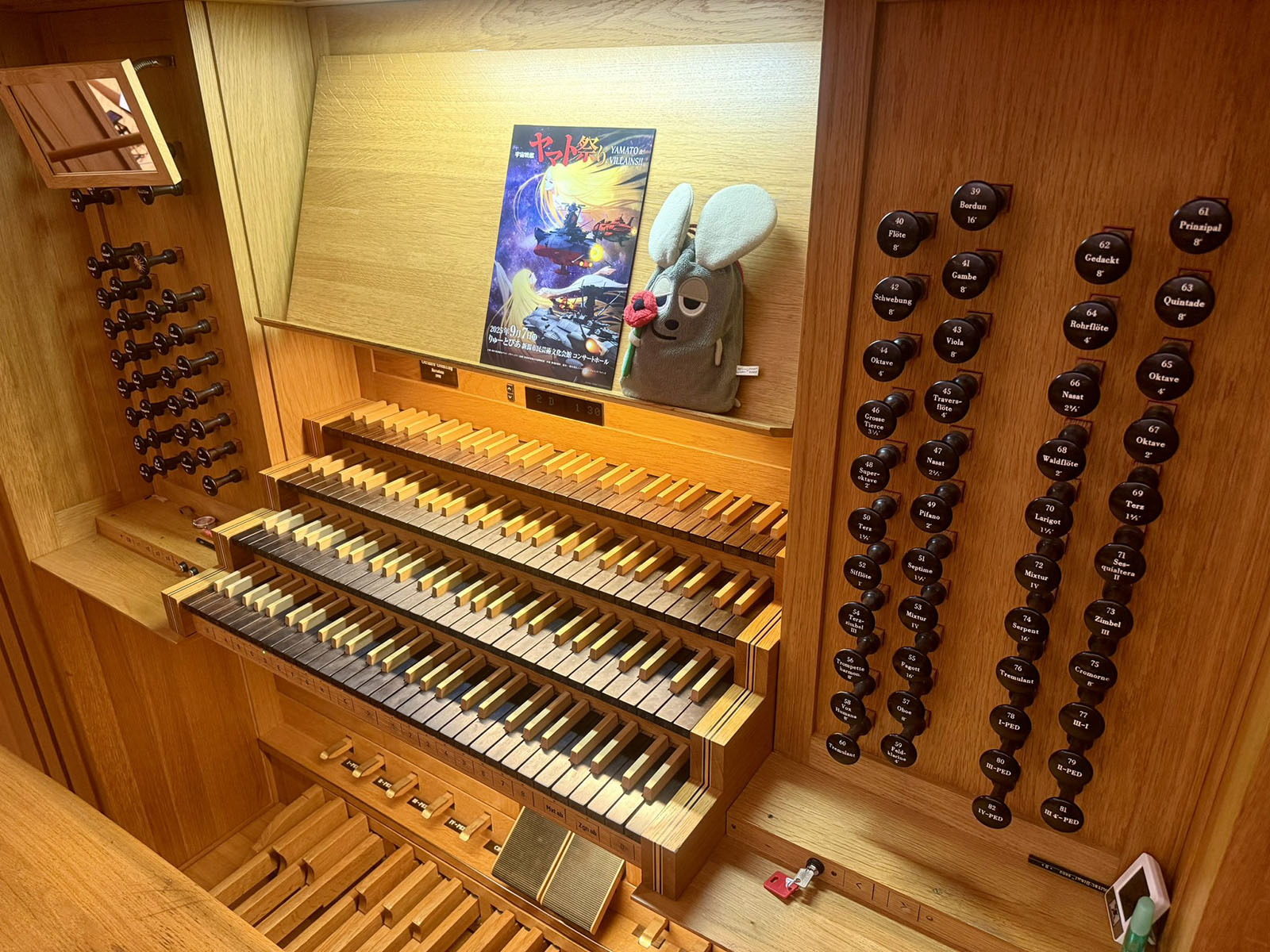 In this Yamato Festival, pipe organ performances are essential, so the performance is held in a hall with a pipe organ. And it was truly wonderful, with applause, applause, applause. The performer is Yuka Ishimaru. She’s a truly wonderful woman, able to effortlessly manipulate the large pipe organ.