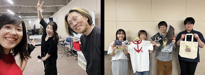 Left: The 50th anniversary concert of Space Battleship Yamato is finally tomorrow! Today I was moved by Isao Sasaki’s singing voice. I was playing The Scarlet Scarf with sweaty hands. – Chiko Miyagawa (vocalist Yuuki in background)