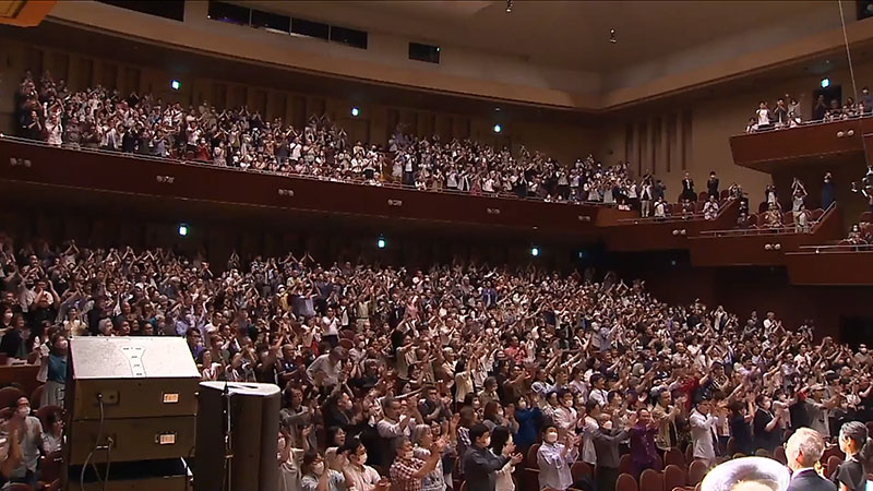 And once again, Sasaki Isao performed Space Battleship Yamato in a blue jacket. The audience was still filled with endless applause. The excitement is still building. However, Akira-san said that they had already performed all the songs for today. So now it was time for everyone to sing Yamato together! At the last regular concert, they said to sing in their hearts or hum along, but tonight we’ll really sing together! It was my first time seeing an all-standing concert at Symphony Hall, and it’s an unforgettable memory.