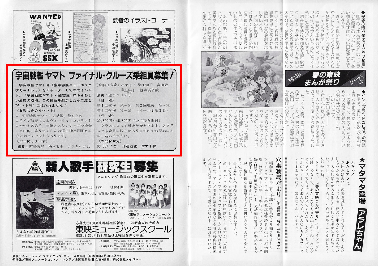And as we announced in the previous issue, the first Yamato TV series is being rebroadcast (and has already started in some areas). It was first seen on October 6, 1974 on Yomiuri, then was rebroadcast to get higher ratings. The series has continued to dominate the conversation in living rooms all over the nation, with subsequent series achieving high ratings. Space Battleship Yamato is an important work as the pioneer of the unprecedented anime boom. Let’s go back to the roots and explore the 10-year history of Yamato.