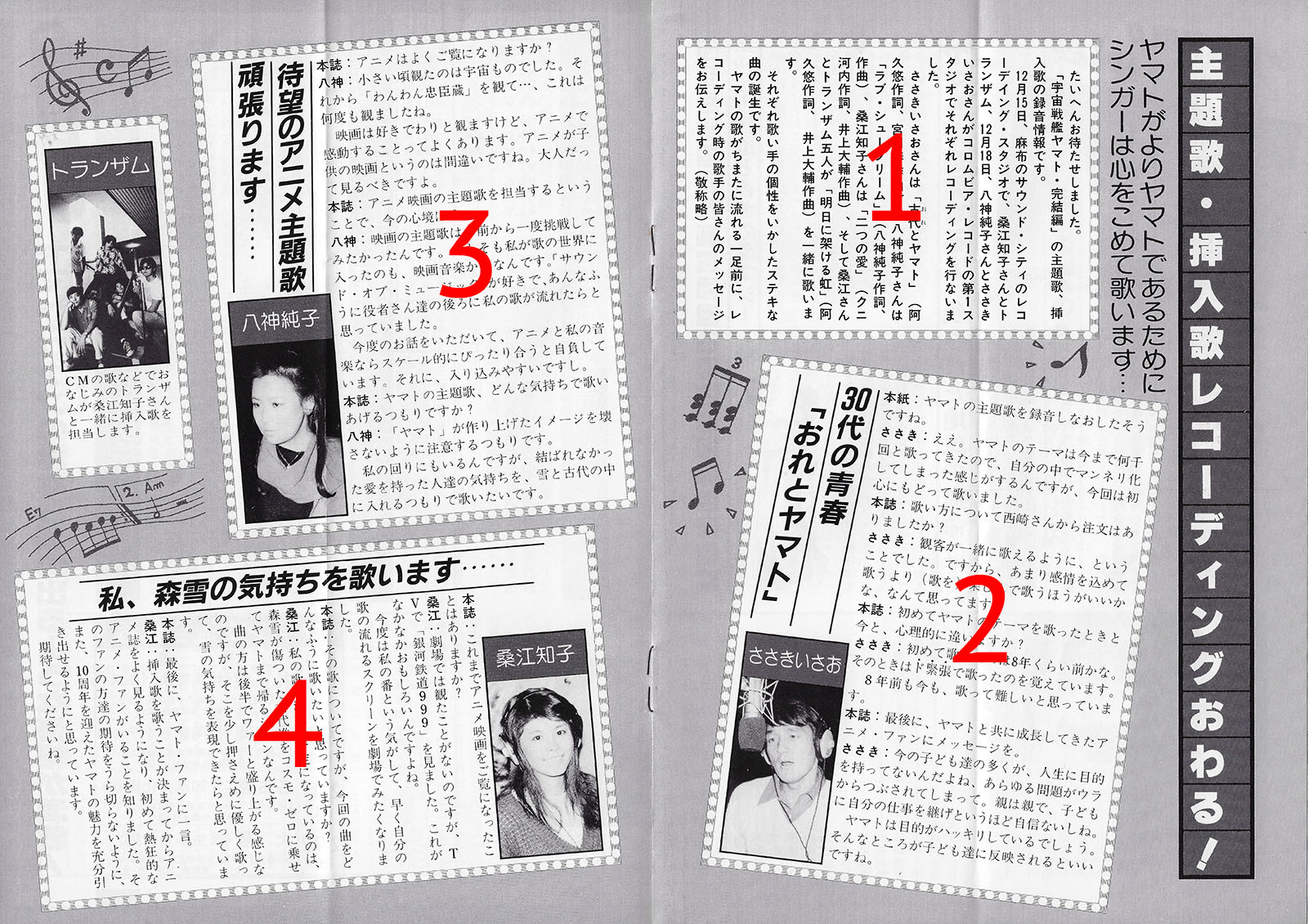 Sorry for the long wait. Here is recording information for the theme song and insert songs from Space Battleship Yamato The Final Chapter.
