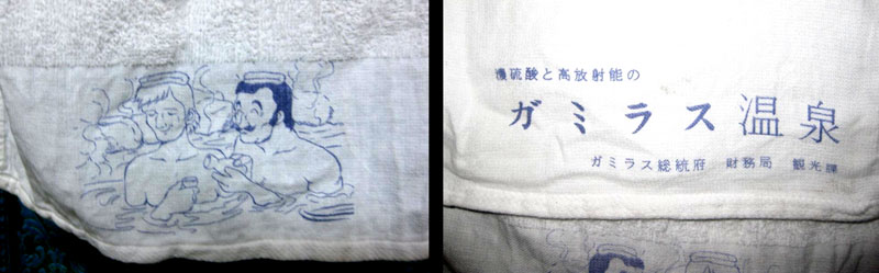 Fan-made towel. Text at right: Gamilas Hot Springs.