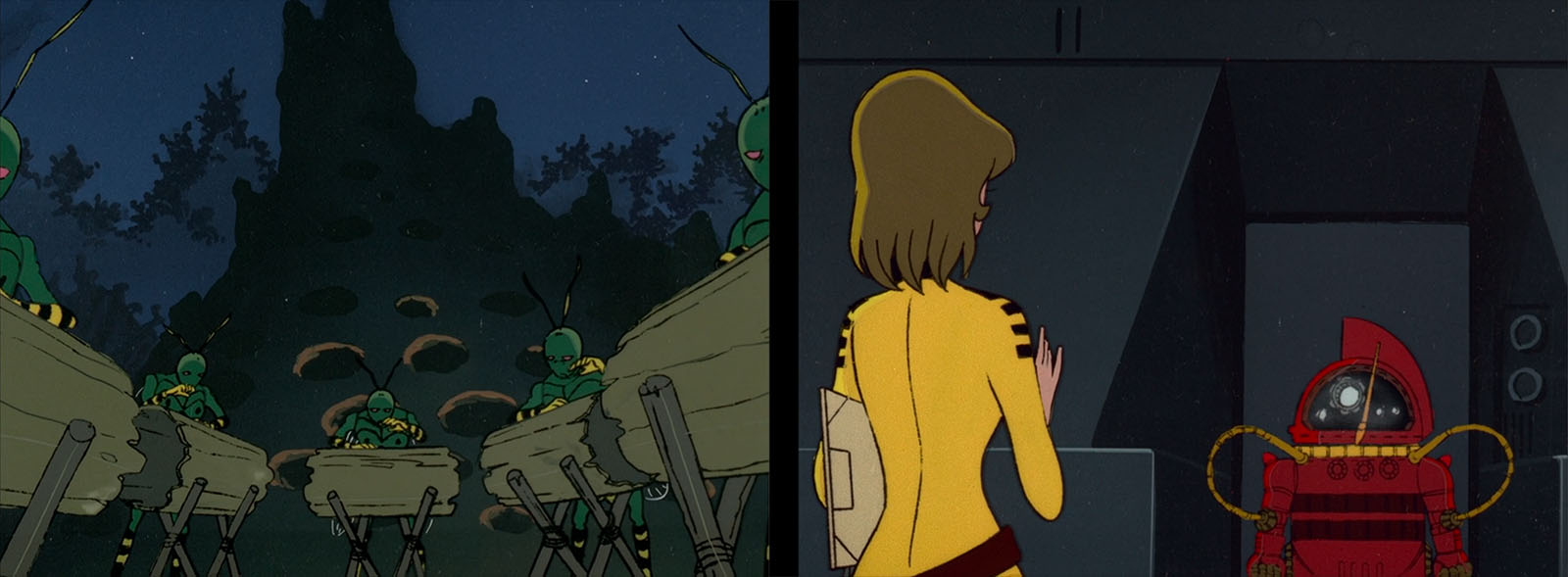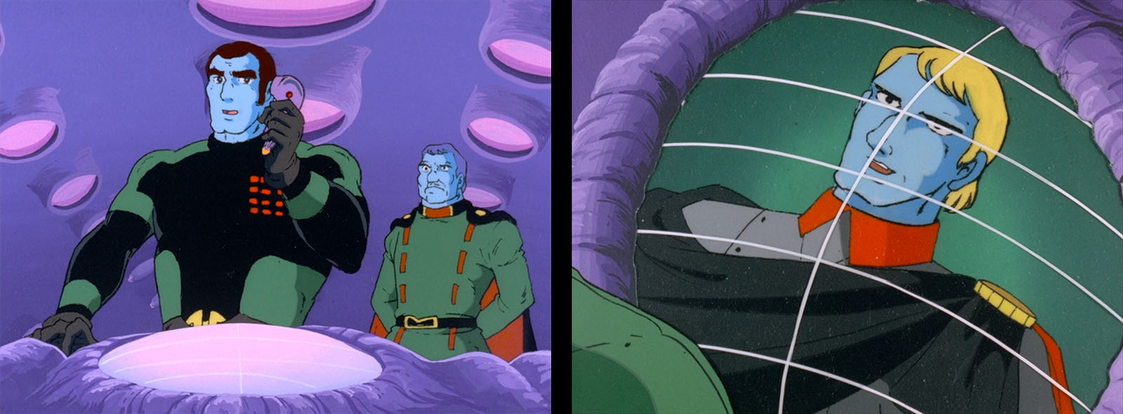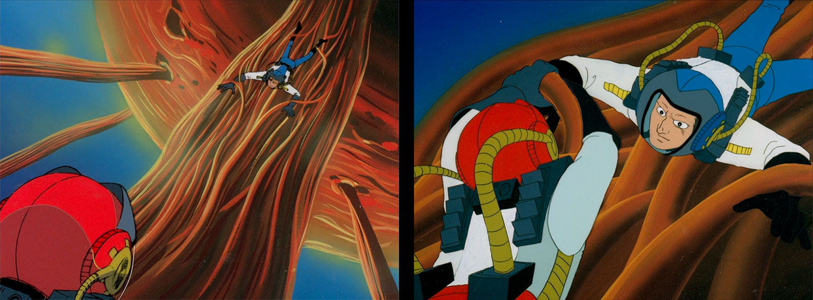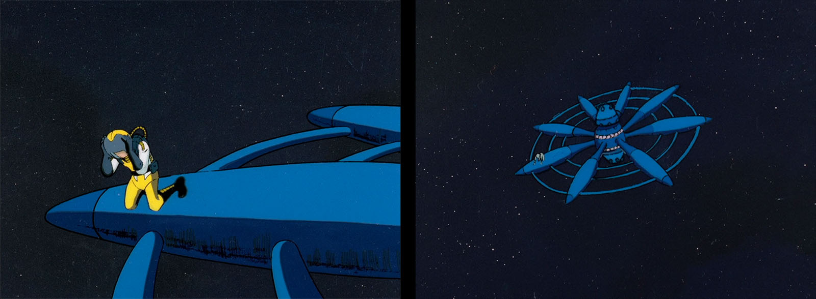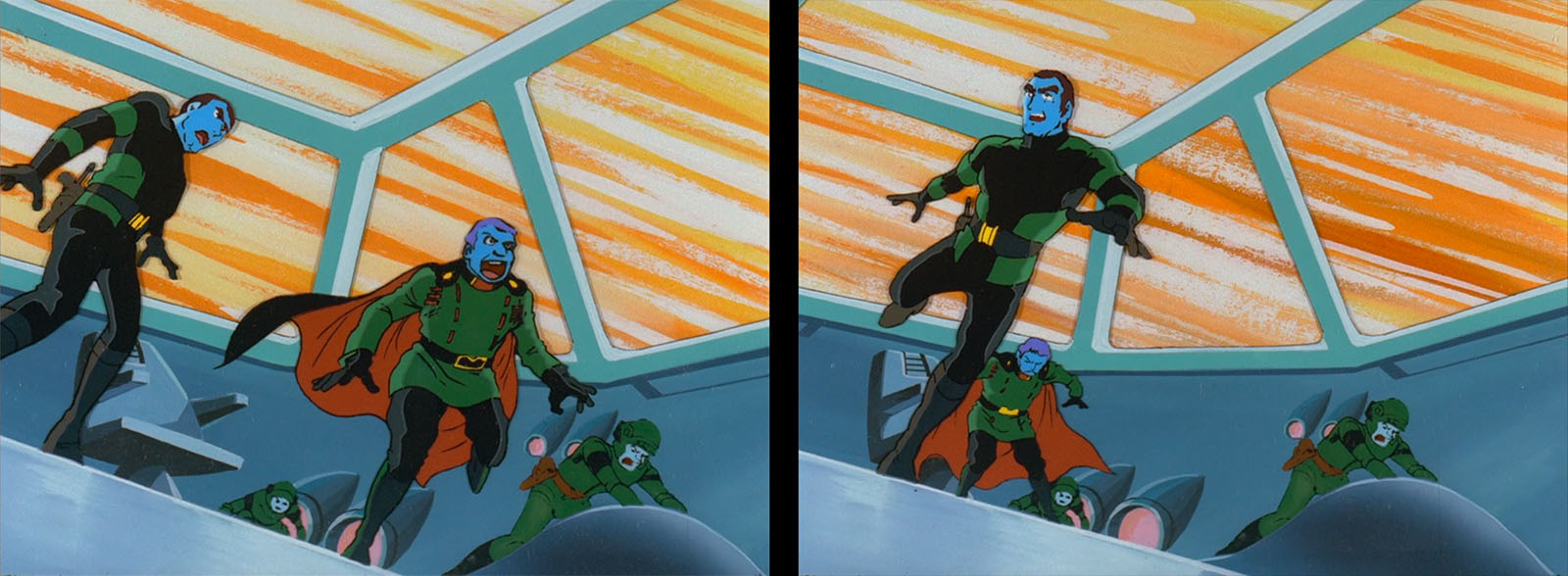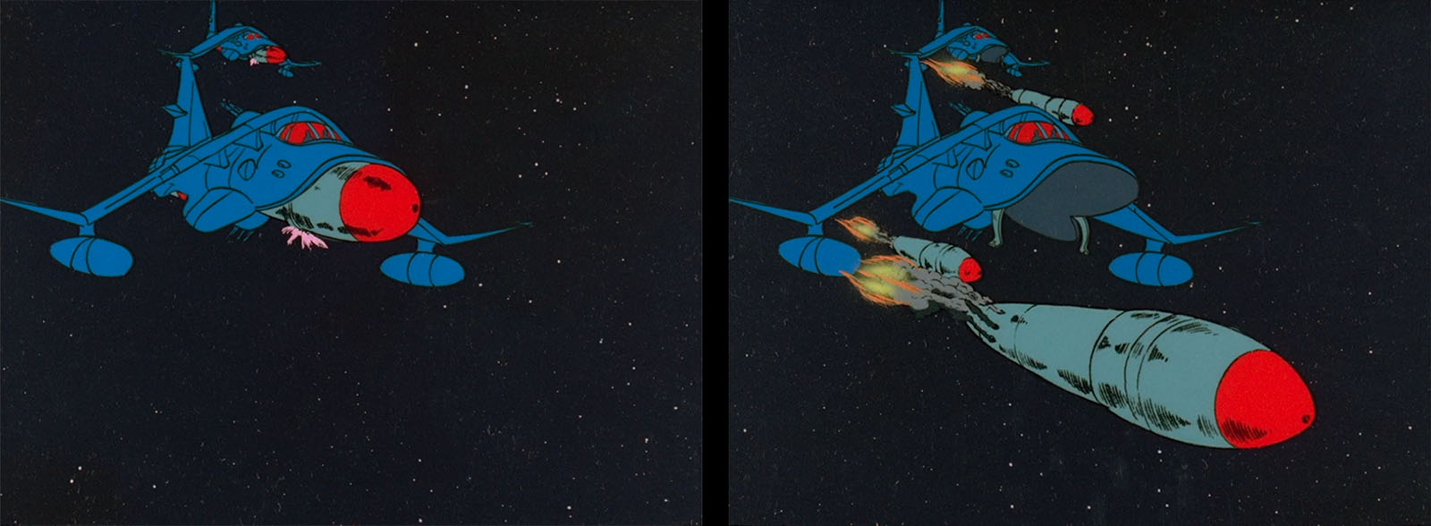 The interior of Dessler’s bridge and the close-combat tubes were, out of necessity, designed by Noboru Ishiguro himself. Tiger Pro, originally slated for animation, was also assigned to Toei Animation’s spring program Shonen Tokugawa Ieyasu, so they must have been turned away once. Somehow, they managed to get the key animation for Part A only, but even the fast-working Kazuhide Tomonaga couldn’t seem to make it in time. It appears his friend, Yoshinori Kanada, stepped in as a helper to assist with the animation.