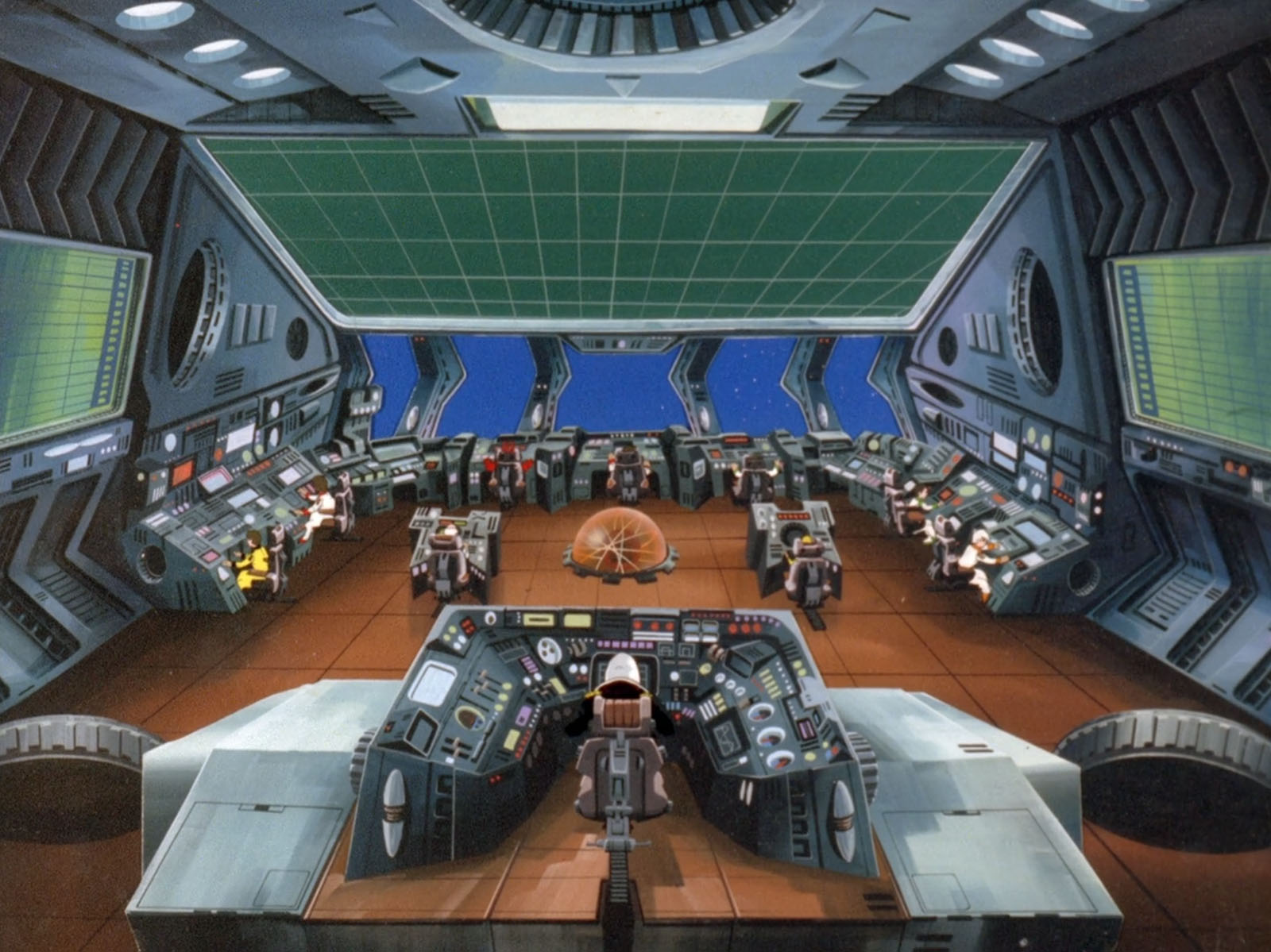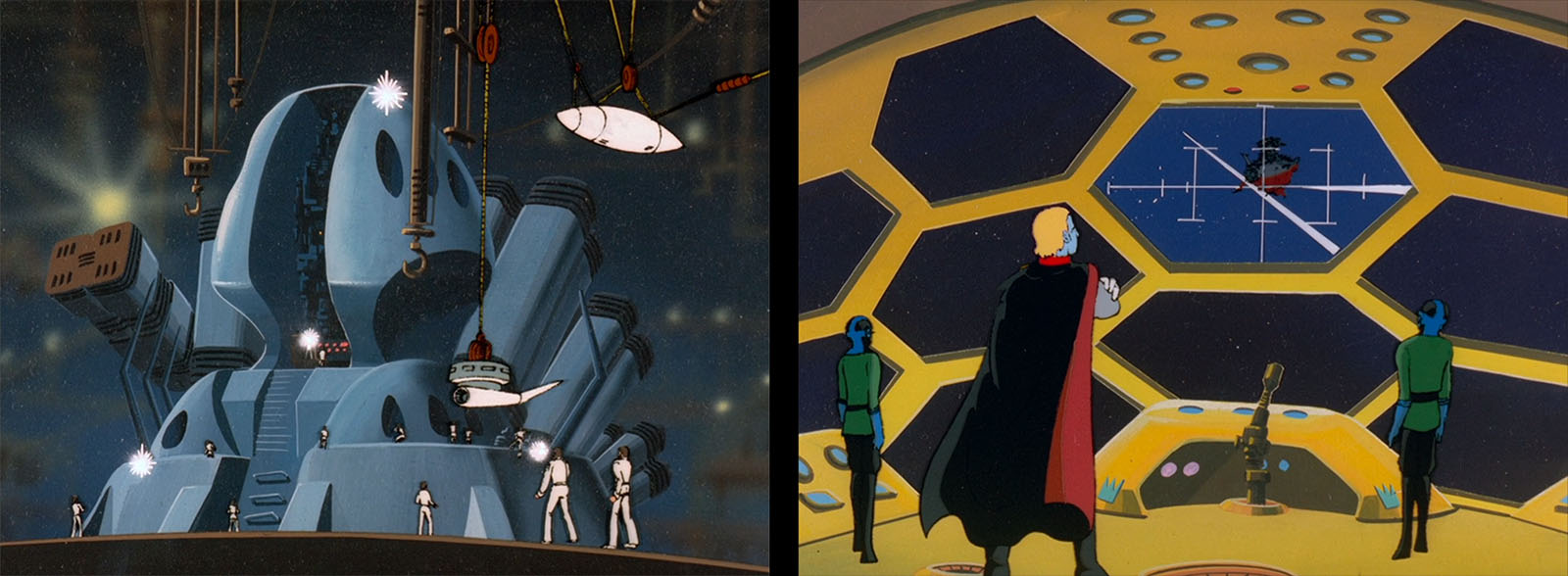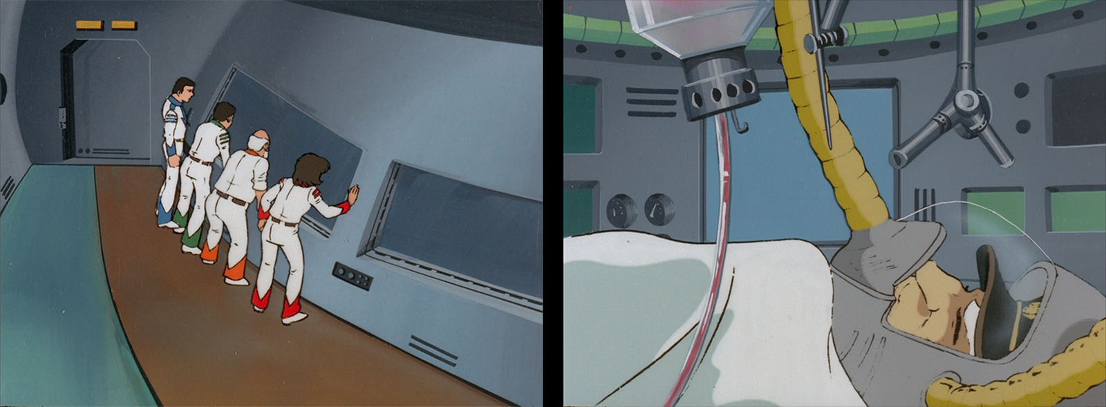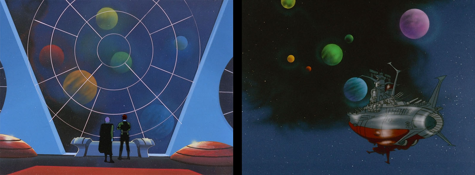 Regarding the blue Earth, photographs might have existed. I heard from Mr. Ishiguro that important shots like Starsha or the full view of the first bridge were photographed in large format and used that way. The first bridge is a massive background spanning 240 frames. There was apparently a proposal to zoom in on the specific sections where each crew member sits and shoot those. However, since the background deteriorates after 3-4 shoots, they switched to taking photographs instead.
